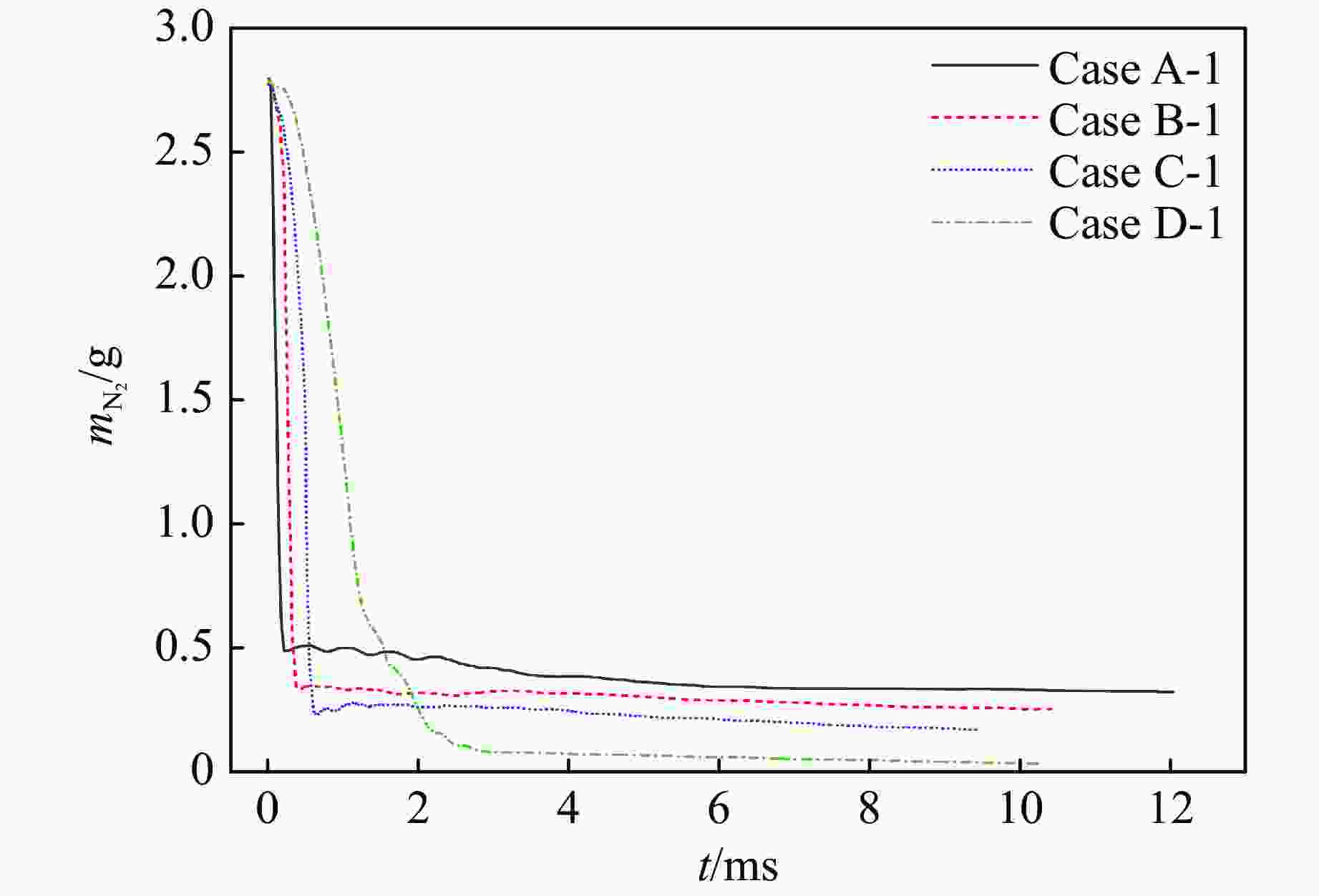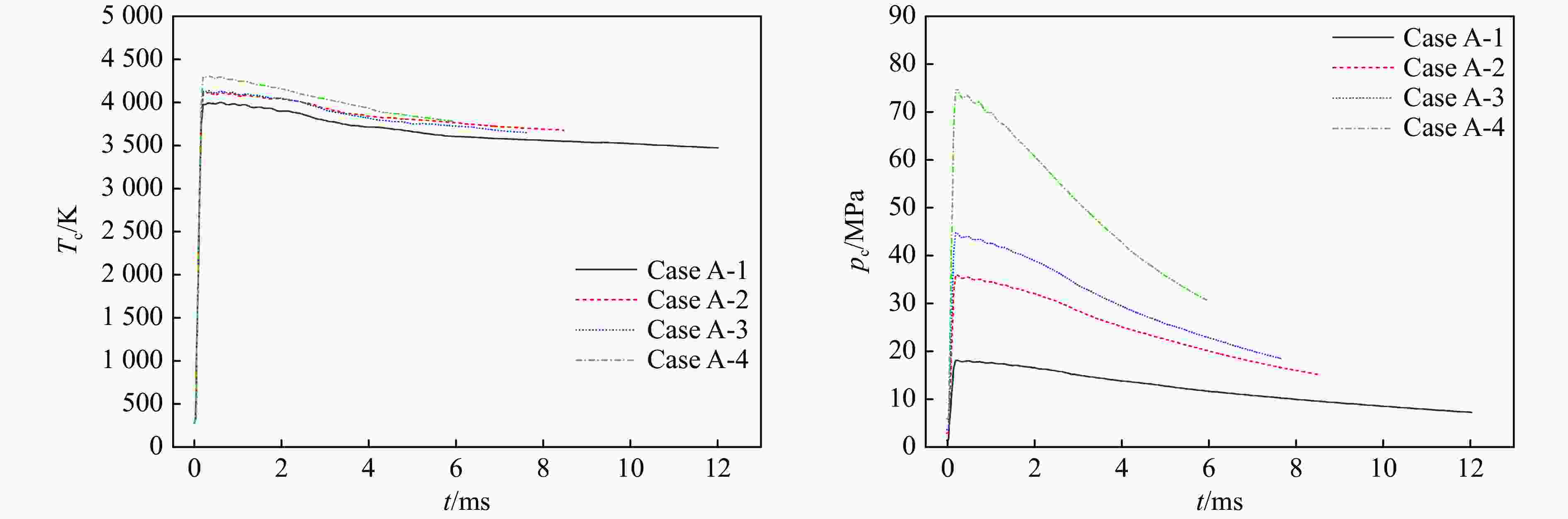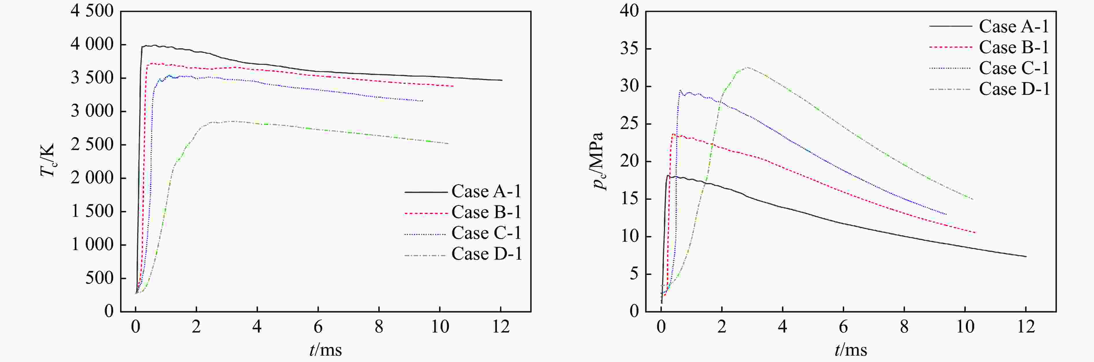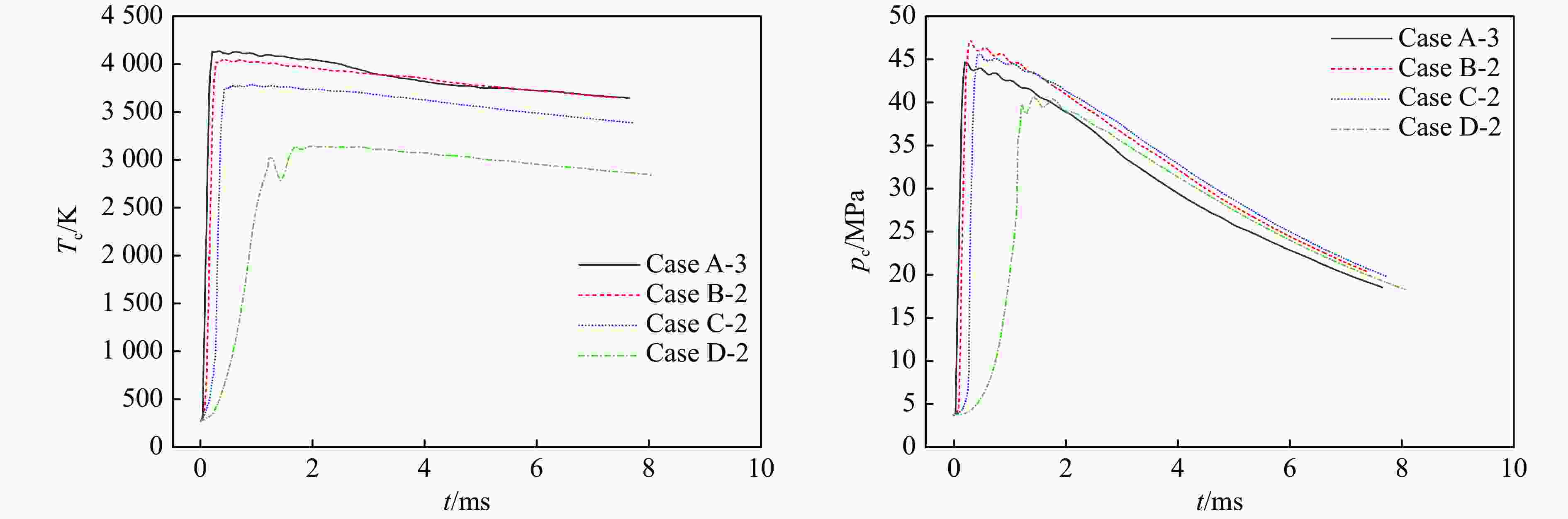 Case No. $p{_{{\rm{N}}_2}} $/MPa $p{_{ {\rm{H} }_2} } $/MPa $p{_{ {\rm{O} }_2} } $/MPa ${p}{_{0}}$/MPa ${x}{_{\mathrm{N}_2}}$/% ${v}{_{\mathrm{c} }}$/(m·s−1) ${\eta }{_{\mathrm{c} }}$/% A-1 0 1.00 0.50 1.50 0 333.3 9.0 A-2 0 2.00 1.00 3.00 0 472.9 9.1 A-3 0 2.50 1.25 3.75 0 523.5 8.9 A-4 0 4.00 2.00 6.00 0 669.8 9.1 B-1 0.50 1.00 0.50 2.00 25.0 394.4 12.6 B-2 0.50 2.20 1.10 3.80 13.2 541.3 10.8 C-1 1.00 1.00 0.50 2.50 40.0 438.6 15.6 C-2 1.10 1.80 0.90 3.80 28.9 534.2 12.9 D-1 2.00 1.00 0.50 3.50 57.1 457.3 17.0 D-2 2.00 1.20 0.60 3.80 52.6 518.8 18.2 -