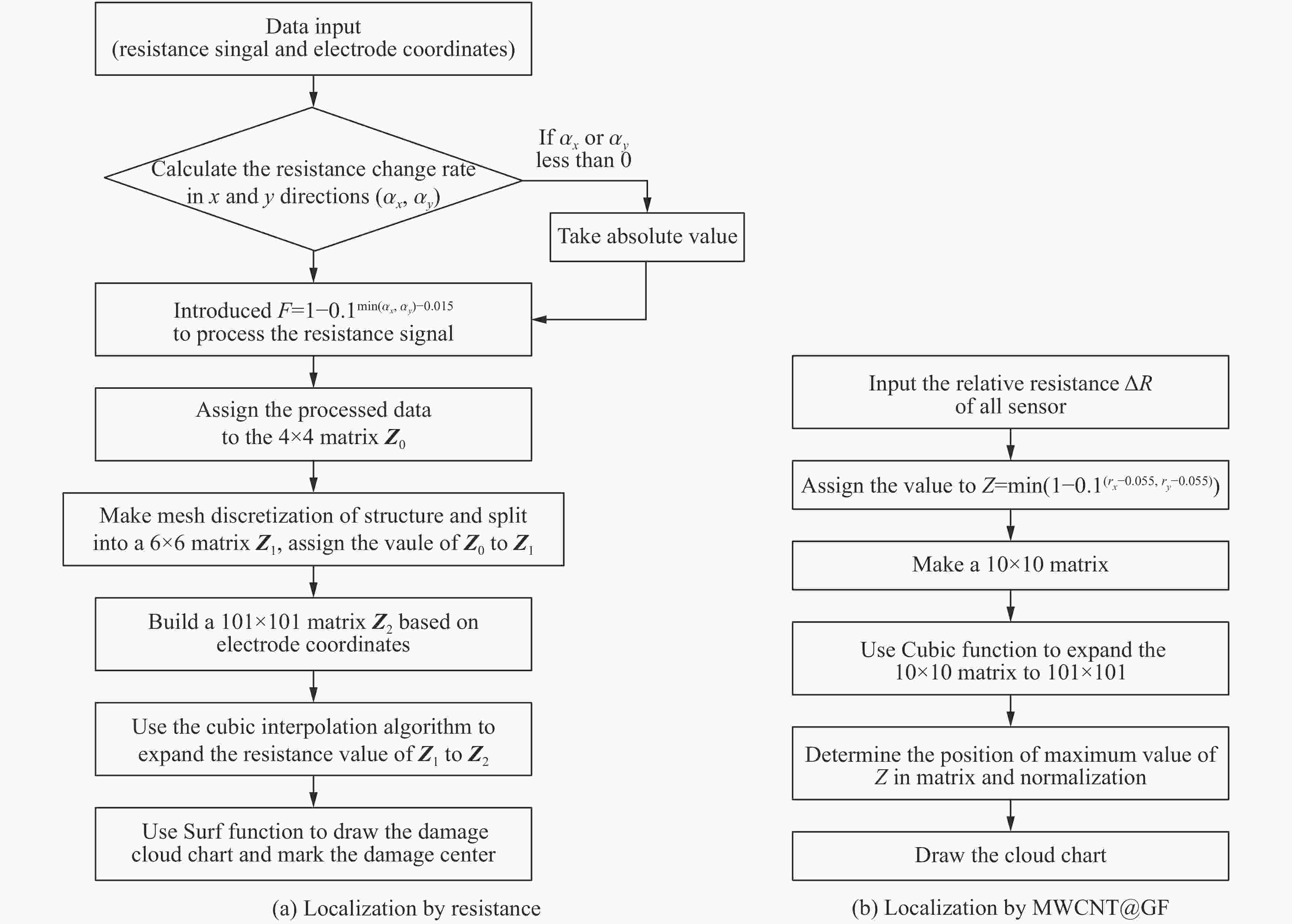 摘要: 针对连续碳纤维增强环氧树脂基复合材料层合板和玻璃纤维(GF)增强环氧树脂基复合材料层合板两类典型结构,开展了基于原位测量的冲击损伤定位研究。利用碳纤维/环氧树脂基复合材料层合板自身的导电性,设计了电极阵列,考察了板厚对定位结果的影响;对于不导电玻璃纤维/环氧树脂基复合材料层合板,设计并制备了多壁碳纳米管涂覆的玻璃纤维束(MWCNT@GF)传感器,并将MWCNT@GF嵌入层合板中形成传感网络,考察了不同入射角度对定位结果的影响。对于上述两种方法,编制了冲击损伤成像算法。结果表明:利用冲击前后碳纤维自身电阻和嵌入MWCNT@GF传感器的方法,可准确定位碳纤维/环氧树脂基复合材料层合板和玻璃纤维/环氧树脂基复合材料层合板的冲击损伤。