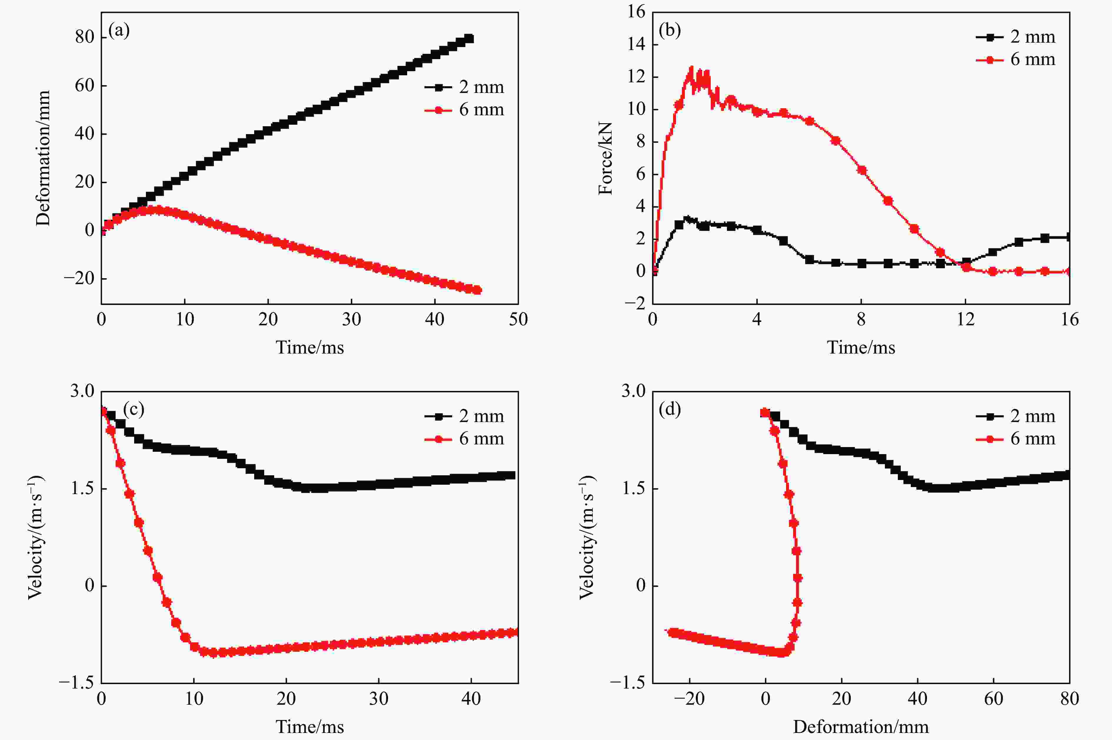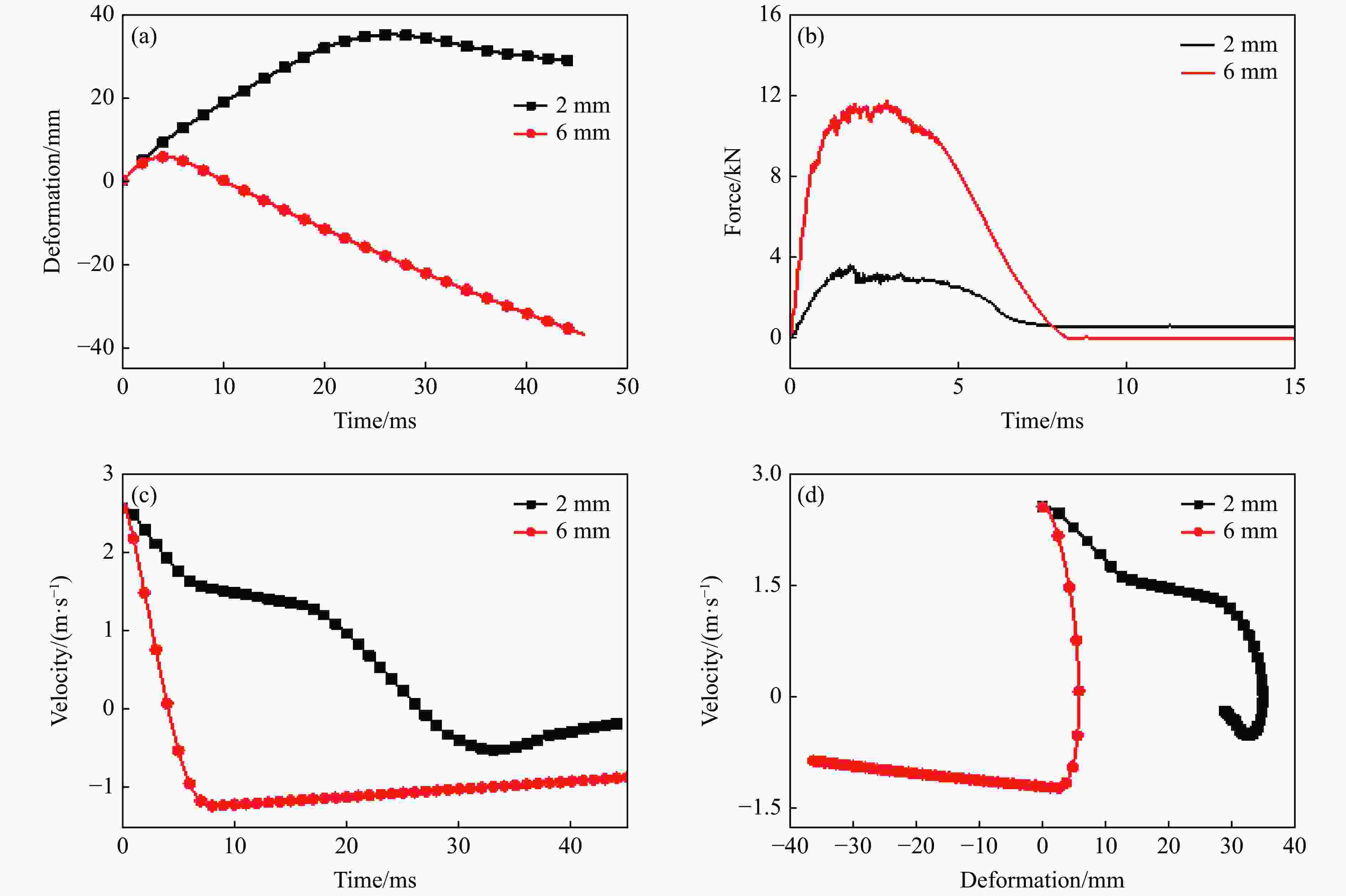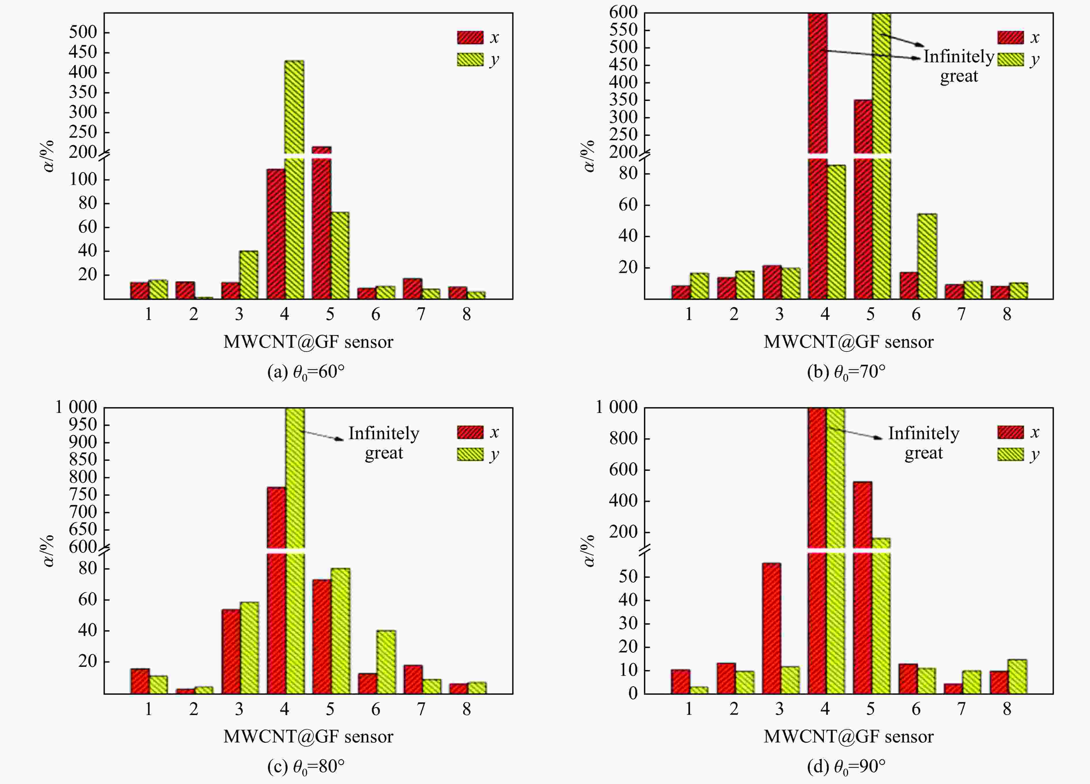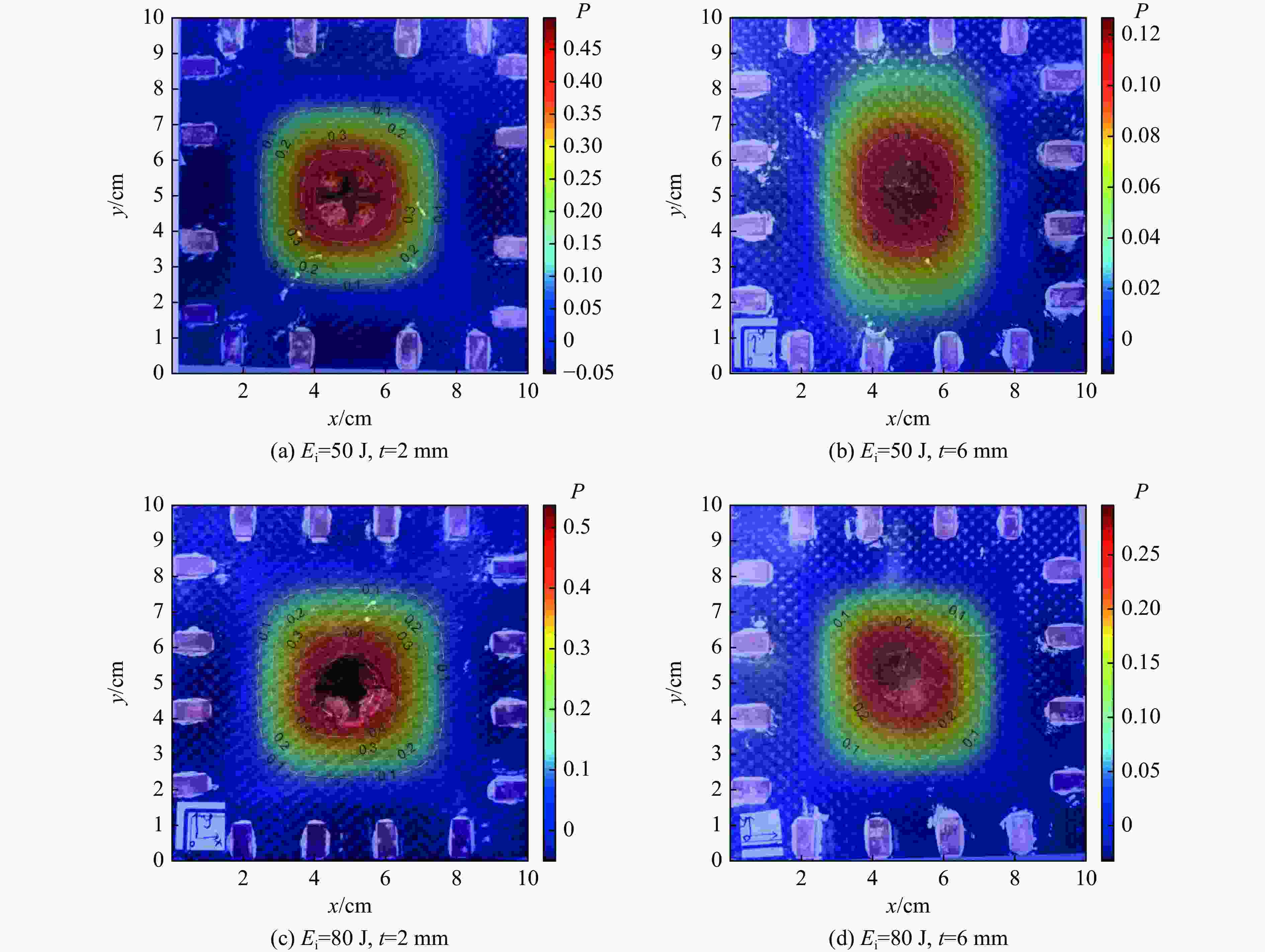Case No. Thickness/mm Impact energy/J Real localization/mm Predicted localization/mm Relative error/% x y x y $\delta $x $\delta $y 1 2 50 47.5 48.5 49.0 50.0 −3.16 −3.09 2 6 50 51.5 51.5 49.0 52.0 4.85 −0.97 3 2 80 49.5 47.0 49.0 48.0 1.01 −2.13 4 6 80 47.5 53.0 46.0 55.0 3.16 −3.77 表 2 利用埋入式MWCNT@GF得到的实际损伤与预测损伤位置的比较