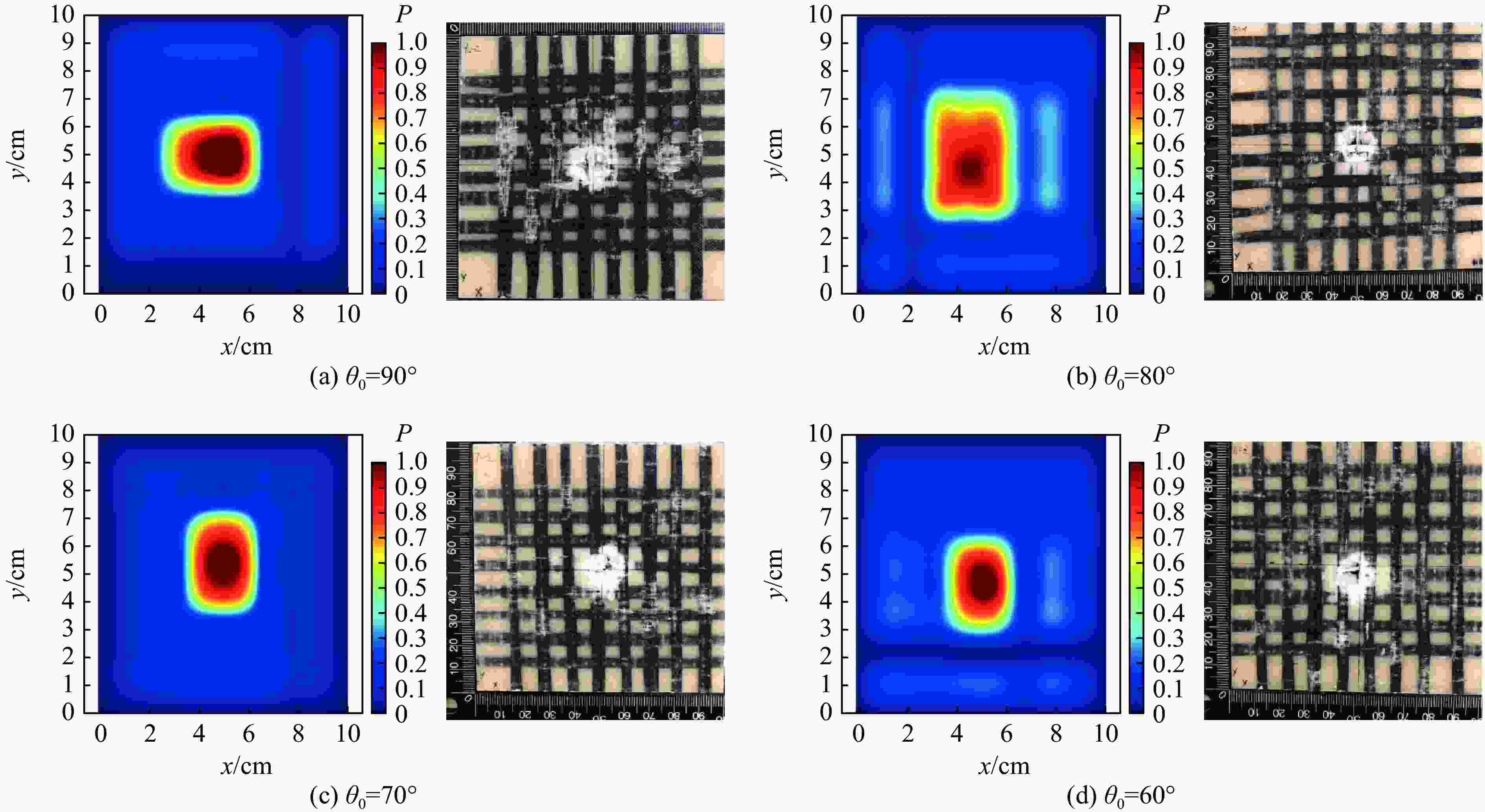 Case No. Thickness/mm Incident angle/(°) Real localization/mm Predicted localization/mm Relative error/% x y x y $\delta $x $\delta $y 1 1 60 48.0 47.5 50.0 48.0 −4.16 −1.05 2 1 70 52.0 50.0 50.0 52.0 3.84 −4.00 3 1 80 50.0 51.5 47.0 48.0 6.00 6.79 4 1 90 50.0 51.0 50.0 50.0 0 1.96 -