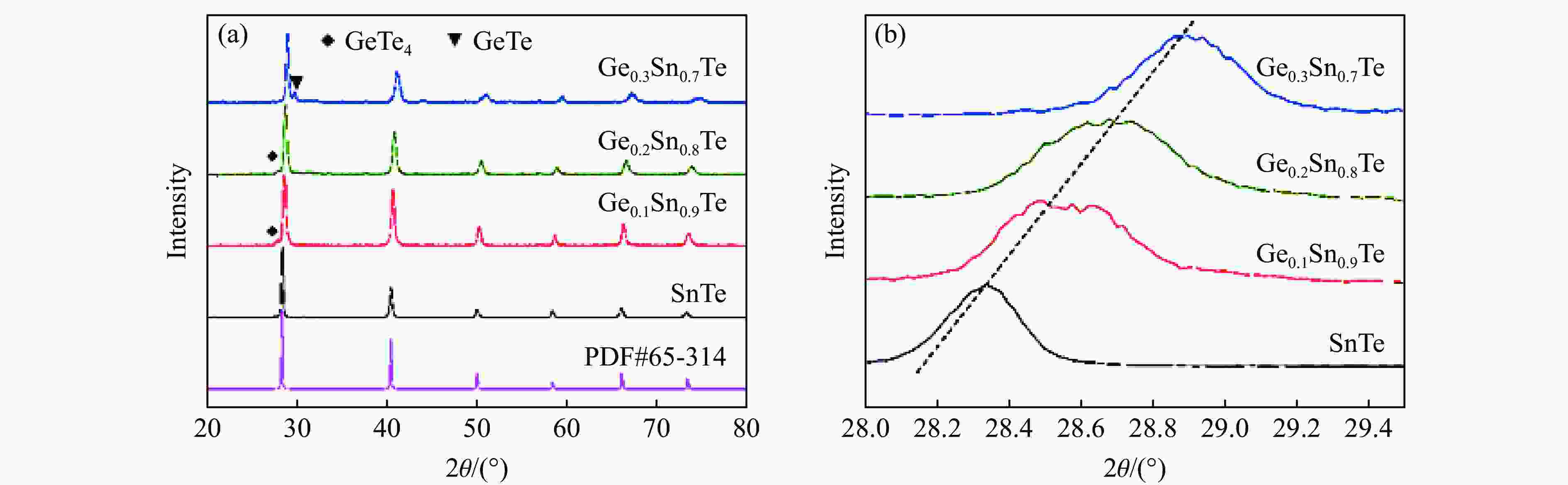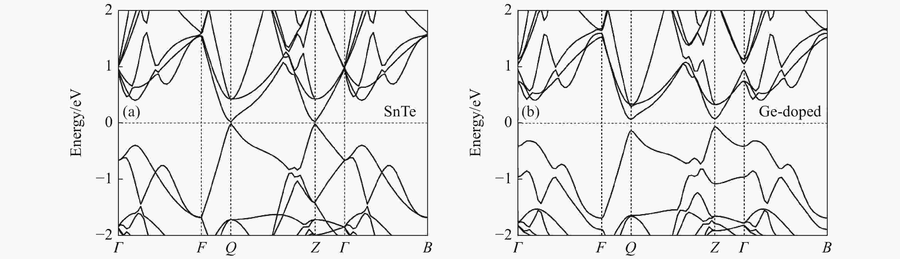 图  SnTe (a)和Ge1/3Sn2/3Te (b)的能带结构