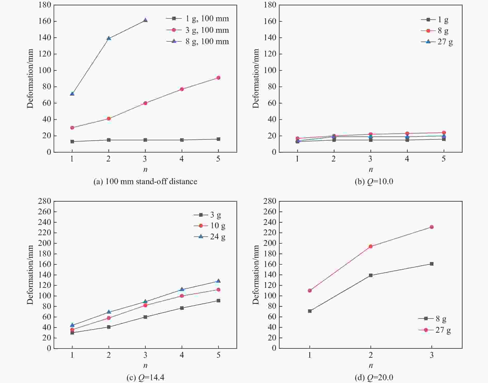 No. W/g H/mm Q/(g1/3·m−1) Rmax/mm n 1 1 100 10.0 154 5 2 8 200 10.0 309 5 3 27 300 10.0 460 5 4 3 100 14.4 220 5 5 10 150 14.4 330 5 6 24 200 14.4 445 5 7 8 100 20.0 310 3 8 27 150 20.0 464 3 -