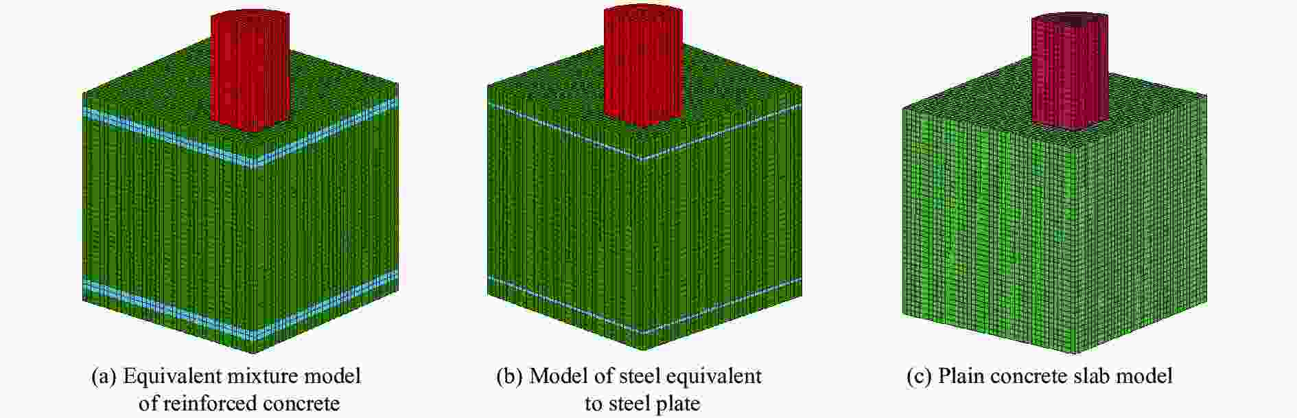 Target No. Models Impact velocity/(m·s–1) Perforation velocity/(m·s–1) Deviation/% Exp. Sim. 1 Mixture equivalent slab 300 93 106 13 2 Steel layers equivalent slab 300 93 100 8 3 Plain concrete slab 300 116 129 12 -