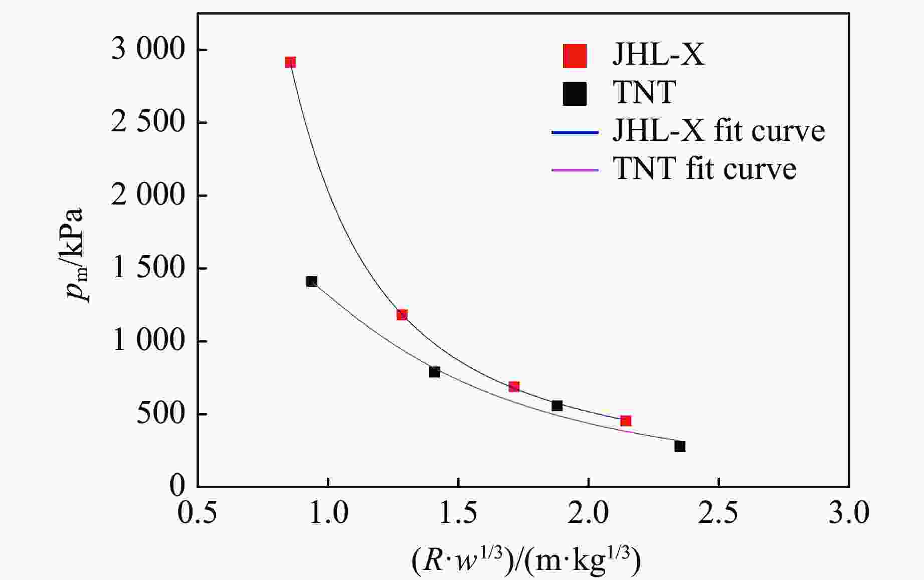 Sample m/g Line pm/kPa 1.0 m 1.5 m 2.0 m 2.5 m TNT 1201.7 OA 1414.91 793.58 688.51 301.55 OB 559.01 258.15 1584.1 OA 2866.66 1554.84 687.23 377.59 OB 2972.43 1370.58 735.99 360.19 JHL-X 1584.7 OA 982.10 614.20 577.96 OB 1070.18 717.62 456.54 1584.3 OA 1083.40 691.73 525.60 OB 1046.54 707.67 445.85 表 4 JHL-X的TNT当量