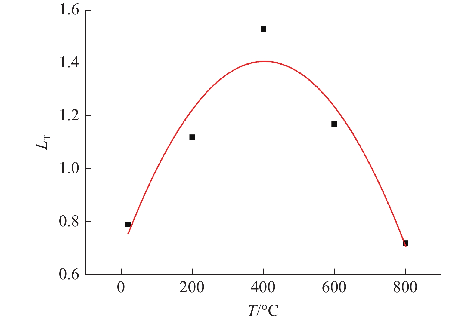 Figure  5.  Curve of temperature weakening factorvarying with temperature