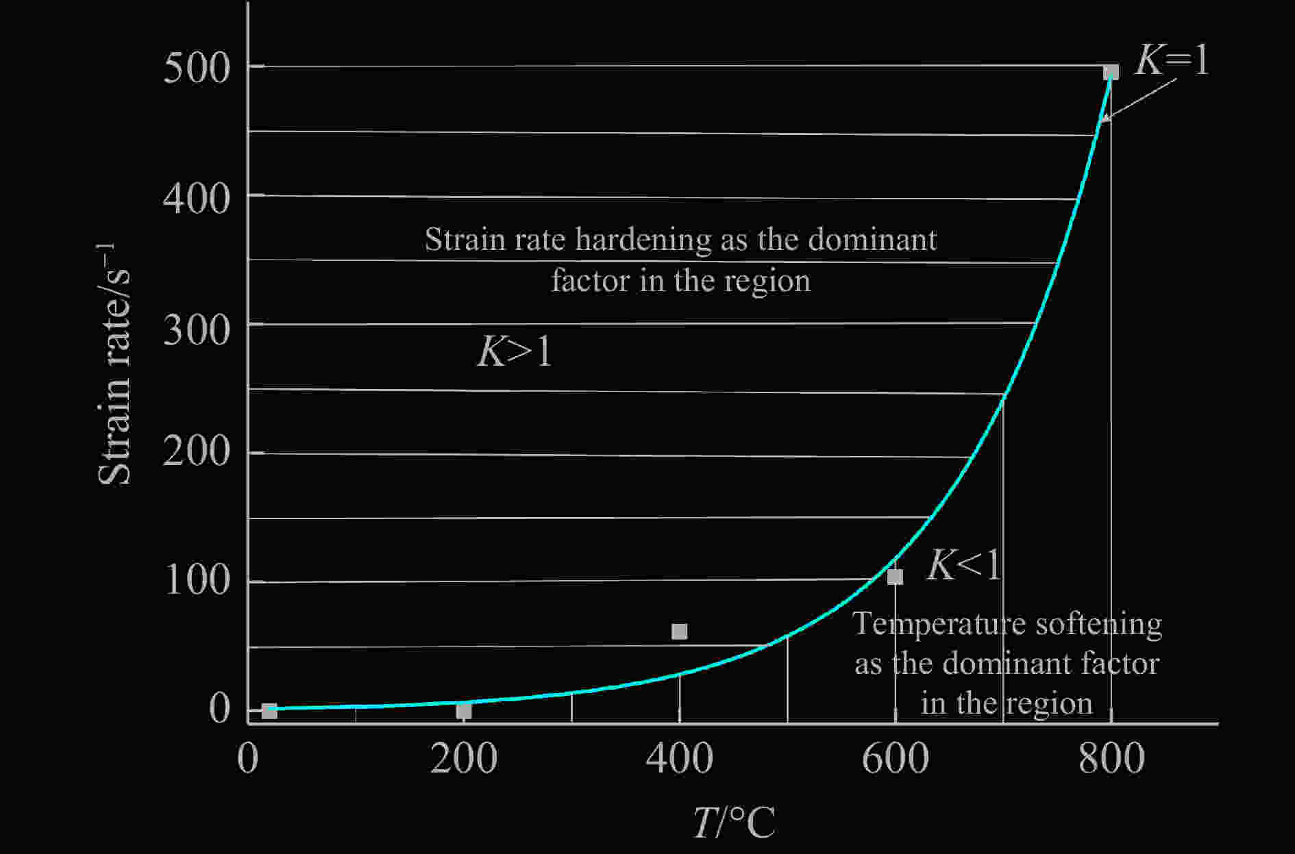 Figure  7.  Relationship between temperature and change rate of combined effect factor of strain rate and temperature when $\dot{\varepsilon} $>$\dot{\varepsilon} $in