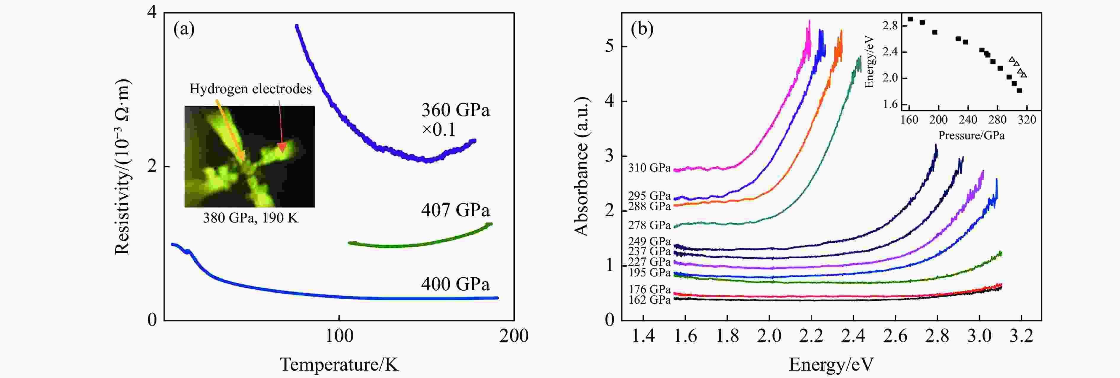 EREMETS M I, DROZDOV A P, KONG P P, et al. Semimetallic molecular hydrogen at pressure above 350 GPa [J]. Nature Physics, 2019, 15(12): 1246–1249. doi: 10.1038/s41567-019-0646-x