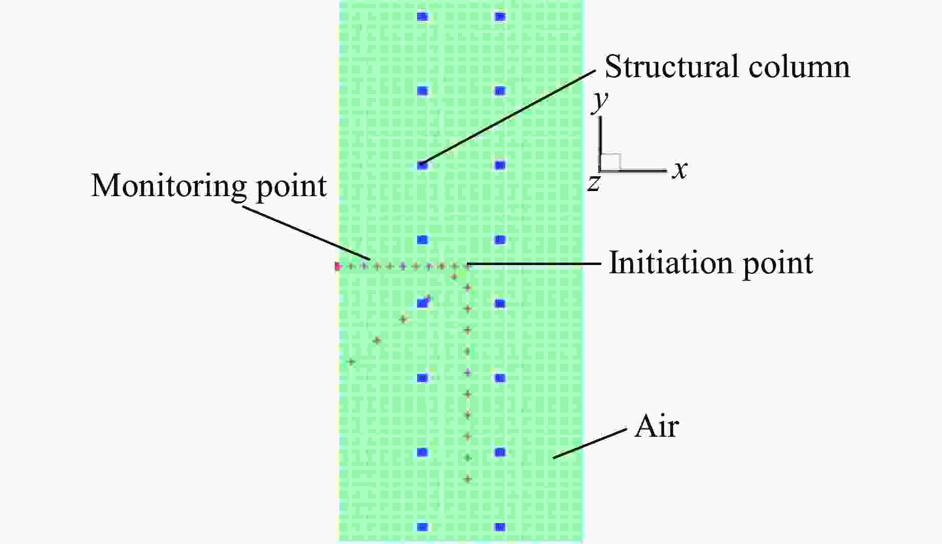 Distance/m Overpressure/MPa Error/% Theoretical formula Numerical simulation 5 2.35 2.25 4.44 10 0.47 0.52 −7.69 表 6 站台有柱区域和无柱区域在固体爆炸作用下结构参数的对比