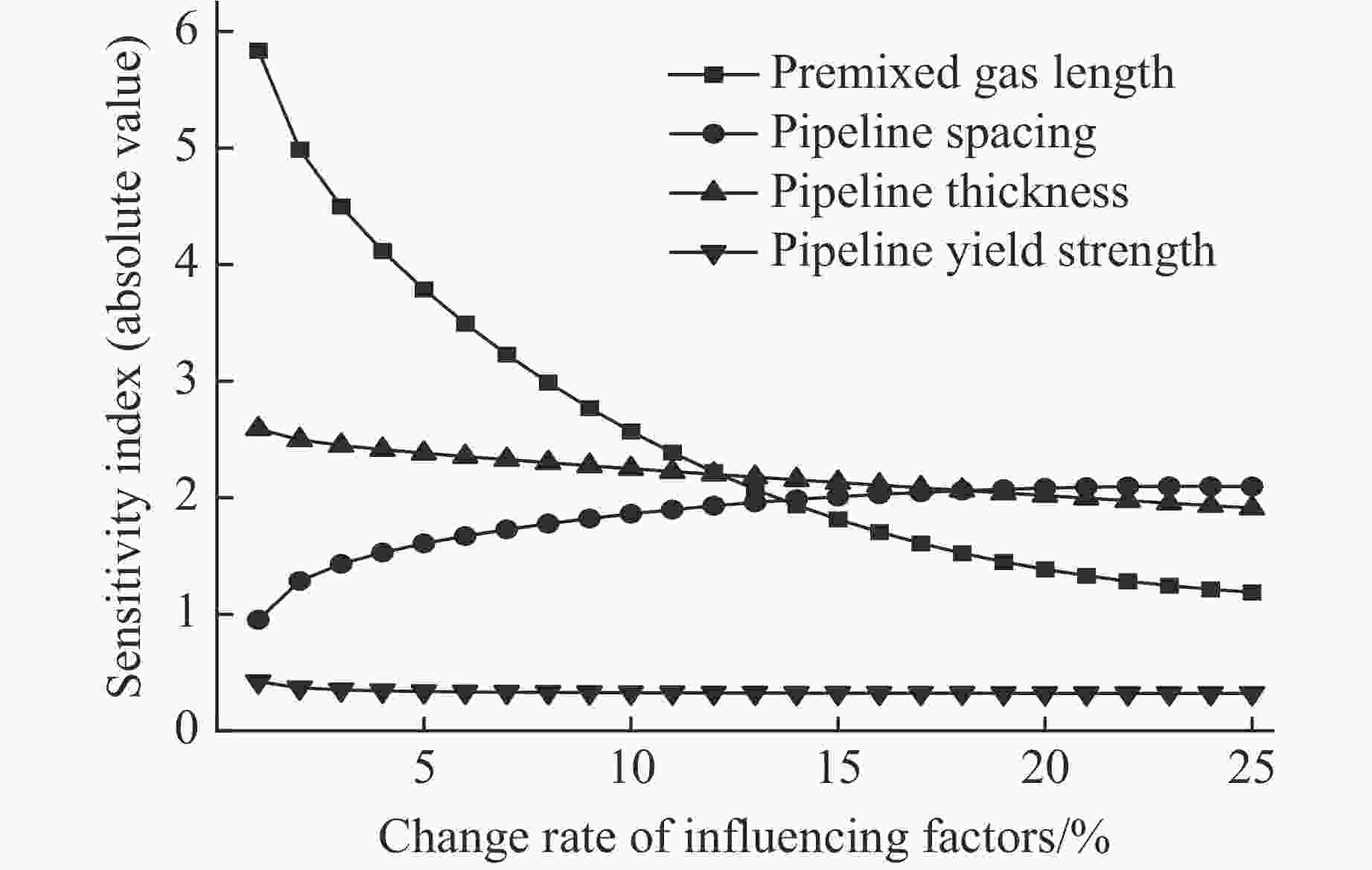 摘要: 为研究综合管廊燃气舱内天然气爆炸时预混气体长度、管道间距、管道壁厚和管道屈服强度4种因素对同舱管道失效的影响规律和影响程度,采用非线性有限元软件ANSYS/LS-DYNA,根据实际案例建立燃气舱三维模型,基于应变的失效判定标准,获取同舱管道的椭圆度变化情况。结果表明:天然气爆炸作用下,同舱管道的椭圆度与预混气体长度正相关,与管道壁厚和管道屈服强度负相关;同舱管道椭圆度与管道间距先负相关后正相关,该燃气舱内最优管道安全间距为0.74 m;管道屈服强度对同舱管道椭圆度的影响程度最小;当影响因素的变化率在1%~12%、13%~18%和19%~25% 3个区间时,对同舱管道椭圆度影响最大的因素分别为预混气体长度、管道壁厚和管道间距。研究结论可为综合管廊燃气舱的设计提供参考。Abstract: In order to study the influence law and degree of premixed gas length, pipeline spacing, pipeline thickness and pipeline yield strength on the failure of the adjacent pipeline under the action of natural gas explosion in the gas compartment of the utility tunnel, a three-dimensional model of the gas compartment is established based on the actual case by using the nonlinear finite element software ANSYS/LS-DYNA to obtain the ovality change of the adjacent pipeline. The results show that under the action of natural gas explosion, the ovality of the adjacent pipeline is positively correlated with the length of premixed gas, and negatively correlated with the thickness and yield strength of the pipeline; the ovality of the adjacent pipeline is negatively correlated first and then positively correlated with the pipeline spacing, the safest pipeline spacing in this gas compartment is 0.74 m; the yield strength of the pipeline has the least influence on the ovality of the adjacent pipeline; the change rate of influencing factors is in the range of 1%–12%, 13%–18% and 19%–25%, the factors that have the greatest influence on the ovality of the adjacent pipeline are the length of premixed gas, pipeline thickness and pipeline spacing. This research can provide a reference for the design of the gas compartment in the utility tunnel.