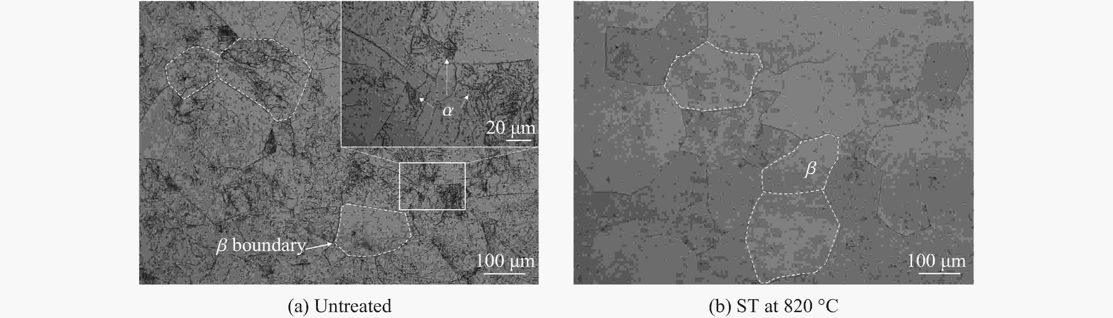 Composition Mass fraction/% Mo 15.33 Nb 2.63 Al 3.37 Si 0.67 Fe 0.35 Ti Rest 表 2 固溶处理前后TB8钛合金的屈服强度