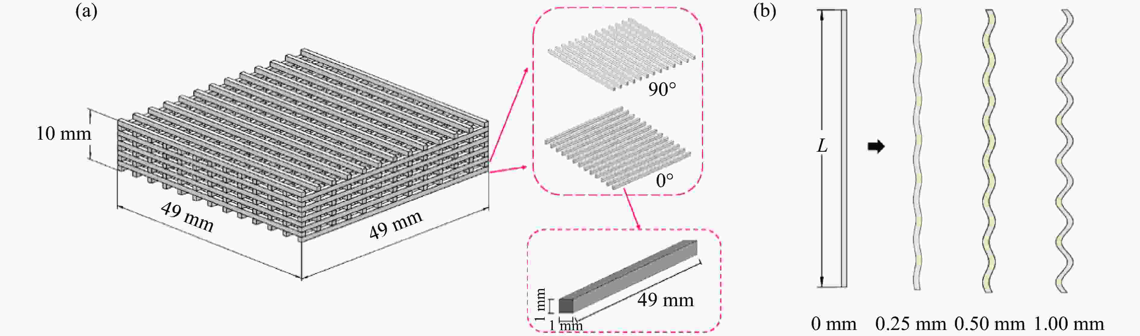 Model Specific structural features Distance/mm Amplitude/mm Angle/(º) M-1 3 0 0, 90 AM-1 3 0.25 0, 90 AM-2 3 0.50 0, 90 AM-3 3 1.00 0, 90 D-1 2 0 0, 90 D-2 2-4-2 0 0, 90 D-3 4-2-4 0 0, 90 AN-1 0 0, 45 AN-2 0 0, 45, 135 AN-3 0 0, 90, 45, 135 AN-4 0 0, 30, 60, 90 H-1 Honeycomb structure layer: equilateral triangle H-2 Honeycomb structure layer: re-entrant 表 2 打印试样的质量
