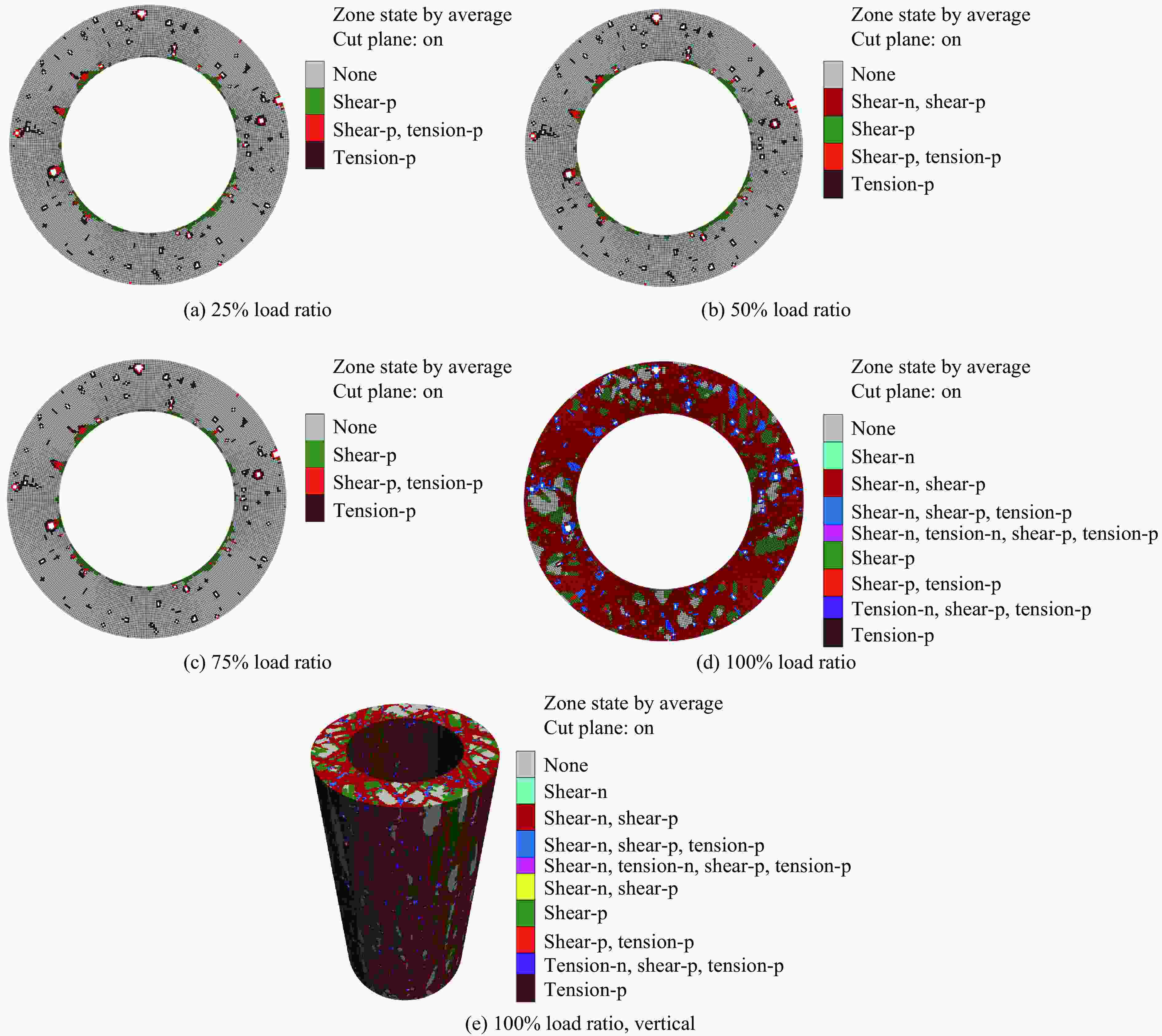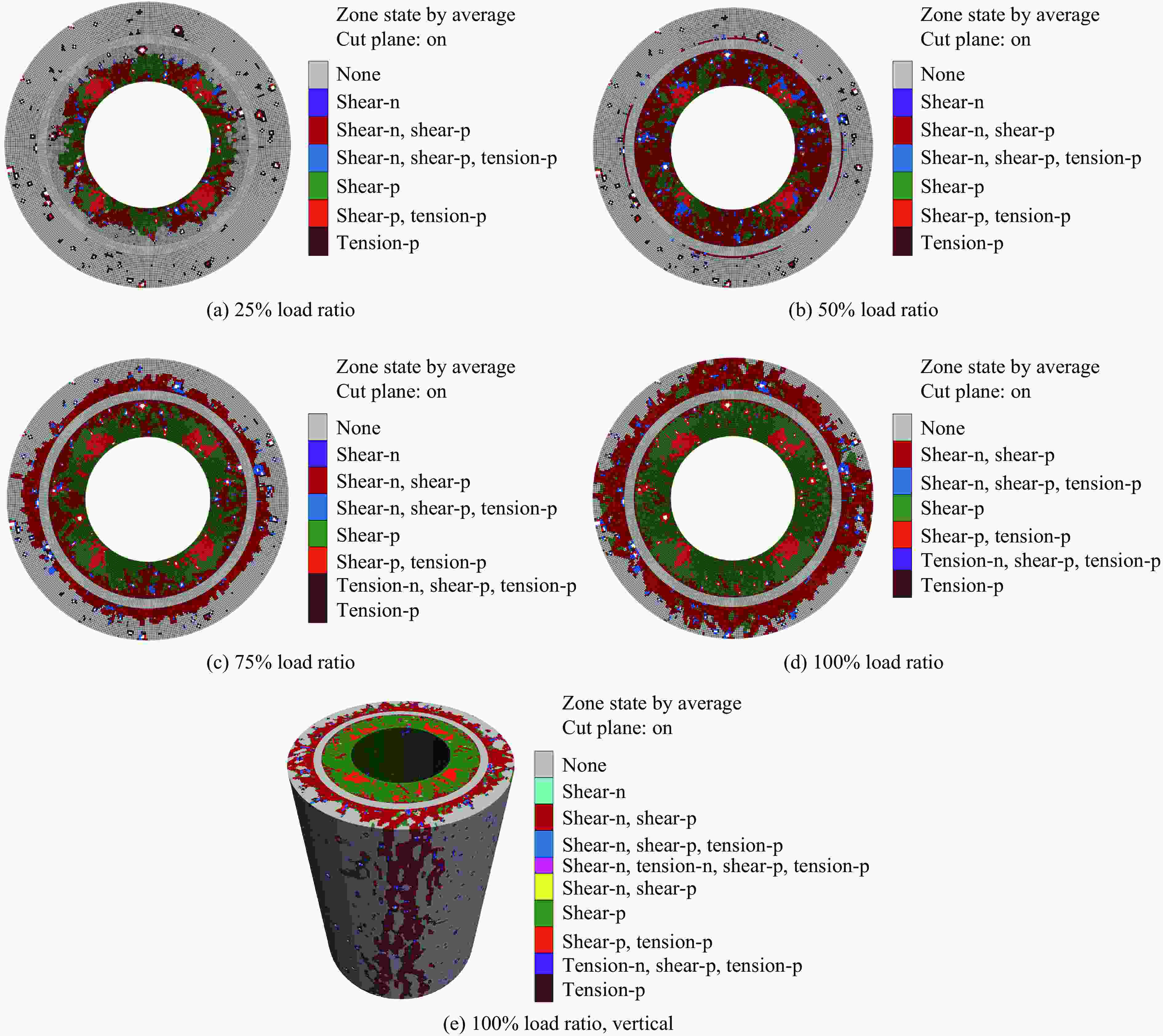 摘要: 针对多孔水泥环的井下失效问题,制备了液硅水泥环岩心试样,开展了力学性能测试试验,同时利用Flac 3D自编程序构建了多孔“单层水泥环”和“水泥环/套管/水泥环”模型,模拟深部地应力作用下水泥环的压裂过程,探明在水压和地应力耦合作用下水泥环的变形破坏机制。研究表明:单层水泥环在应力作用下表现为脆性破坏,外层套管和水泥环的保护能有效提高水泥环的峰值载荷。研究结果为揭示水泥环密封失效的破坏机理提供了理论基础。Abstract: The liquid silicon cement sheath samples were prepared, and the mechanical property testing experiments were carried out. Aiming at the problem of downhole failure of porous cement sheath, the porous “single-layer cement sheath” and “cement sheath-casing-cement sheath” models were established by using Flac 3D self-programming program to simulate the cement sheath fracturing process under the action of deep in-situ stress, and the deformation and failure laws of cement sheath under the coupling action of hydraulic pressure and in-situ stress were proved. The research shows that the single-layer cement sheath exhibits brittle failure under the action of stress, while under the protection of the outer casing and the cement sheath, the peak load of the cement sheath can be effectively increased. The research results provide a theoretical basis for revealing the failure mechanism of cement ring seal failure.