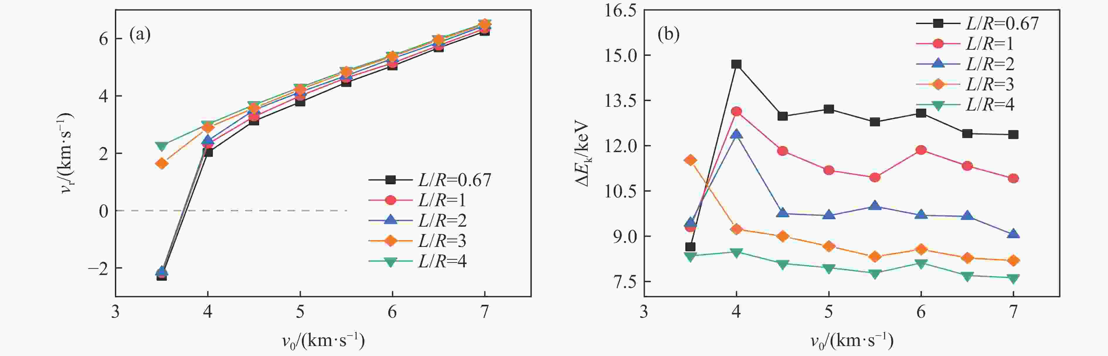 图  13  不同尺寸比例半球形弹丸冲击双层石墨烯时剩余速度和动能损耗随冲击速度的变化