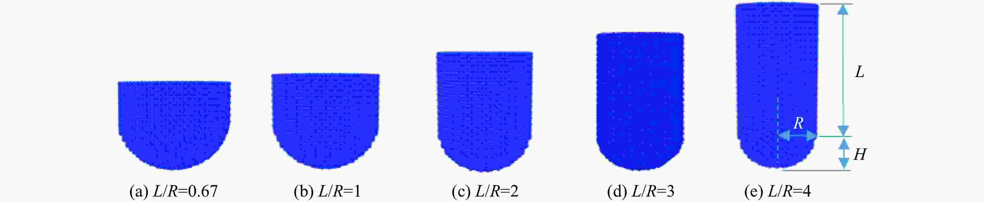 Figure  2.  Schematic diagram of five kinds hemispherical projectiles with different length-radius ratios (L/R)