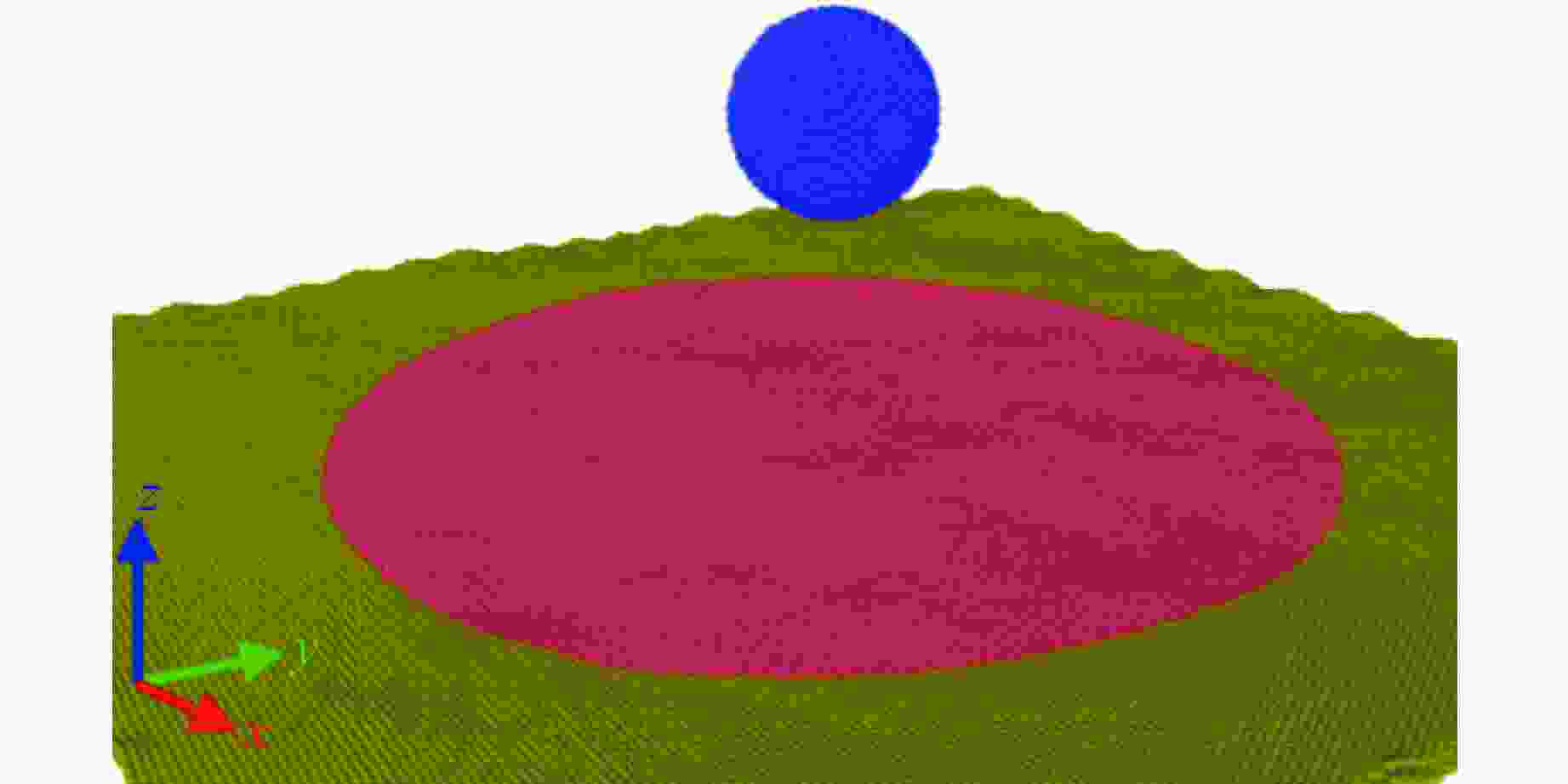 图  冲击模型示意图(红色部分为冲击区域,黄色部分为固定区域,蓝色部分为球形弹丸)