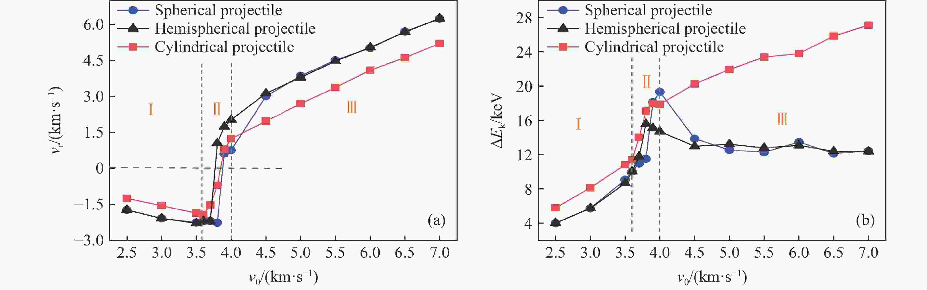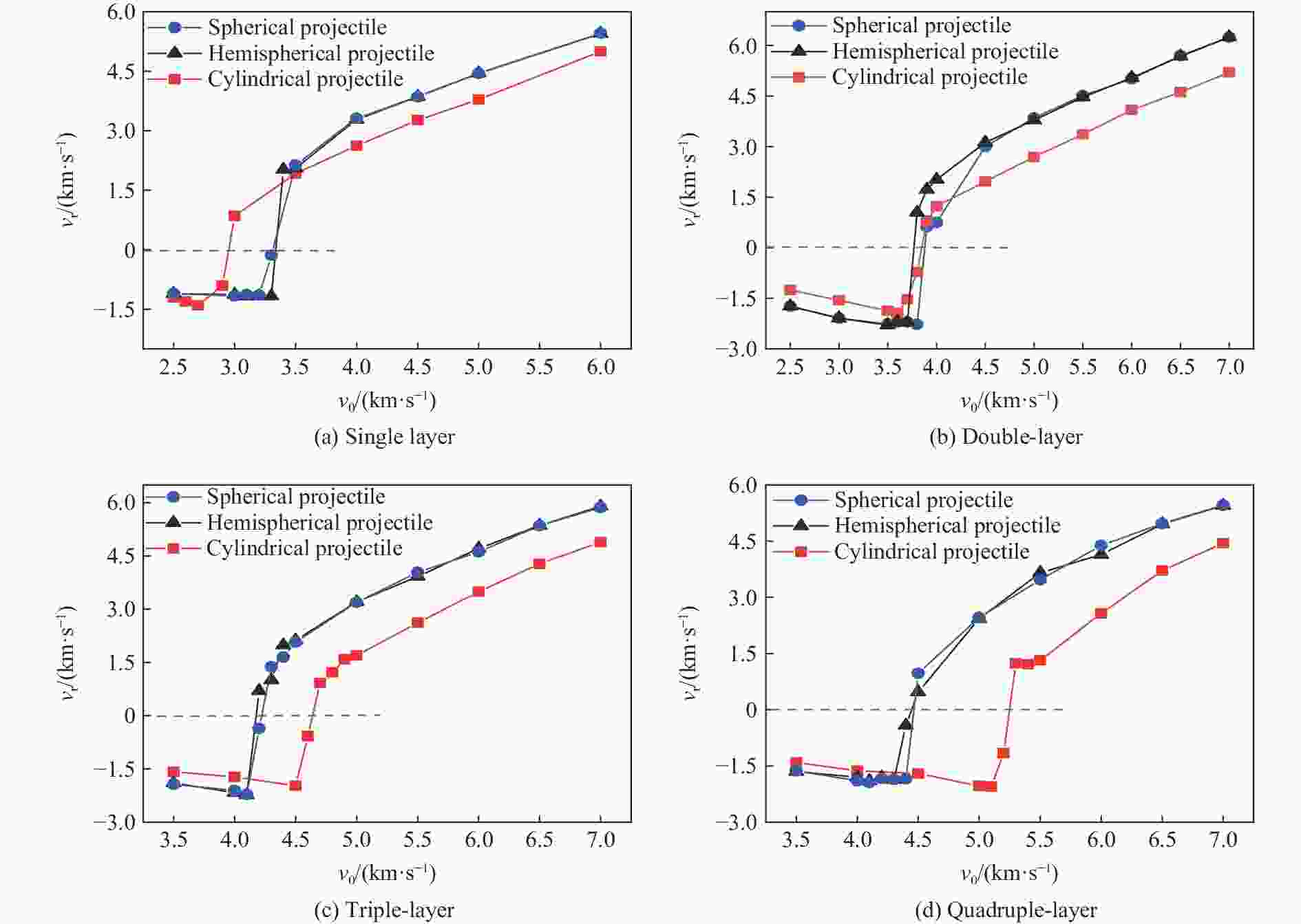 表  1  不同形状弹丸冲击不同层数石墨烯的弹道极限速度