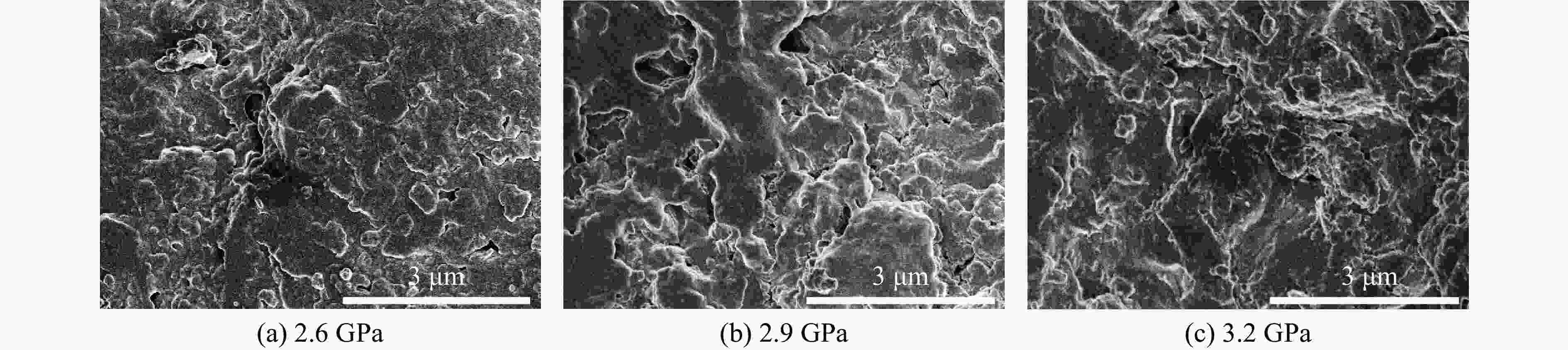 Synthesis condition Ablation at 1600 ℃ Ablation at 2000 ℃ Rm/(μg·s−1) Rl/(μm·s−1) Rm/(μg·s−1) Rl/(μm·s−1) 2.6 GPa, 950 ℃ 67 0.17 230 4.16 2.9 GPa, 950 ℃ 55 0.15 260 4.60 3.2 GPa, 950 ℃ 17 0.16 30 6.00 表 2 高压制备的ZrB2-ZrC复合材料样品的致密度及其在1600 °C的烧蚀率
