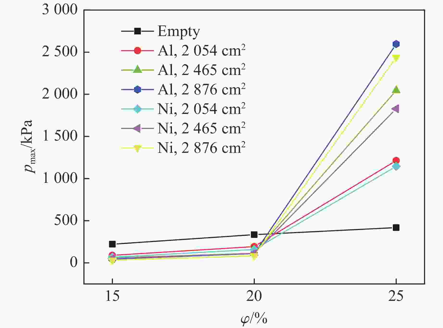 Figure  4.  Maximum explosion pressure curves of aluminum wire group under different filling surface area