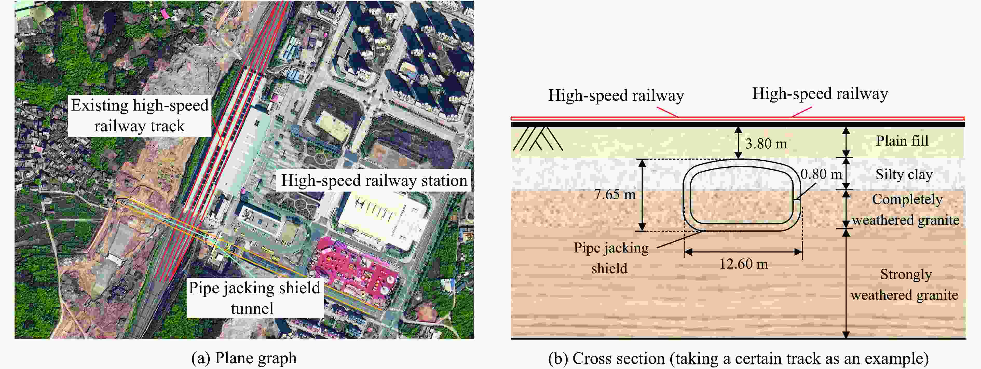 摘要: 为了保证超大矩形盾构隧道开挖面的稳定性,依托某超大矩形盾构隧道工程,采用理论分析、数值模拟和现场监测方法对复合地层下穿高铁超大矩形盾构隧道开挖面的极限支护力进行了研究,提出了复合地层下穿高铁超大矩形盾构隧道开挖面临界破坏模式,并基于极限平衡理论推导了极限支护力计算方法。数值模拟和现场监测结果表明:提出的极限支护力计算方法与数值模拟和现场监测的误差分别在10.40%~18.30%和11.19%~16.85%区间,说明极限支护力公式安全可靠,可应用至实际工程中。研究结果可为类似工程开挖面稳定性控制提供参考。Abstract: To ensure the face stability of the super-large rectangular shield tunnel, based on a super-large rectangular shield tunnel, the theoretical analysis, numerical simulation and field monitoring are used to study the ultimate support force of the super-large rectangular shield tunnel crossing the high-speed railway in the composite stratum. The critical failure mode of excavation surface of super-large rectangular shield tunnel crossing high-speed railway in a composite stratum is proposed, and the calculation method of ultimate support force is deduced based on the ultimate equilibrium theory. The results of numerical simulation and field monitoring show that the errors between the proposed ultimate support force calculation method and numerical simulation as well as the proposed ultimate support force calculation method and field monitoring are 10.40%–18.30% and 11.19%–16.85%, respectively. The formula of ultimate support force is safe and reliable, and can be applied to practical engineering. The research conclusion can provide a reference for the stability control of excavation face in similar projects.