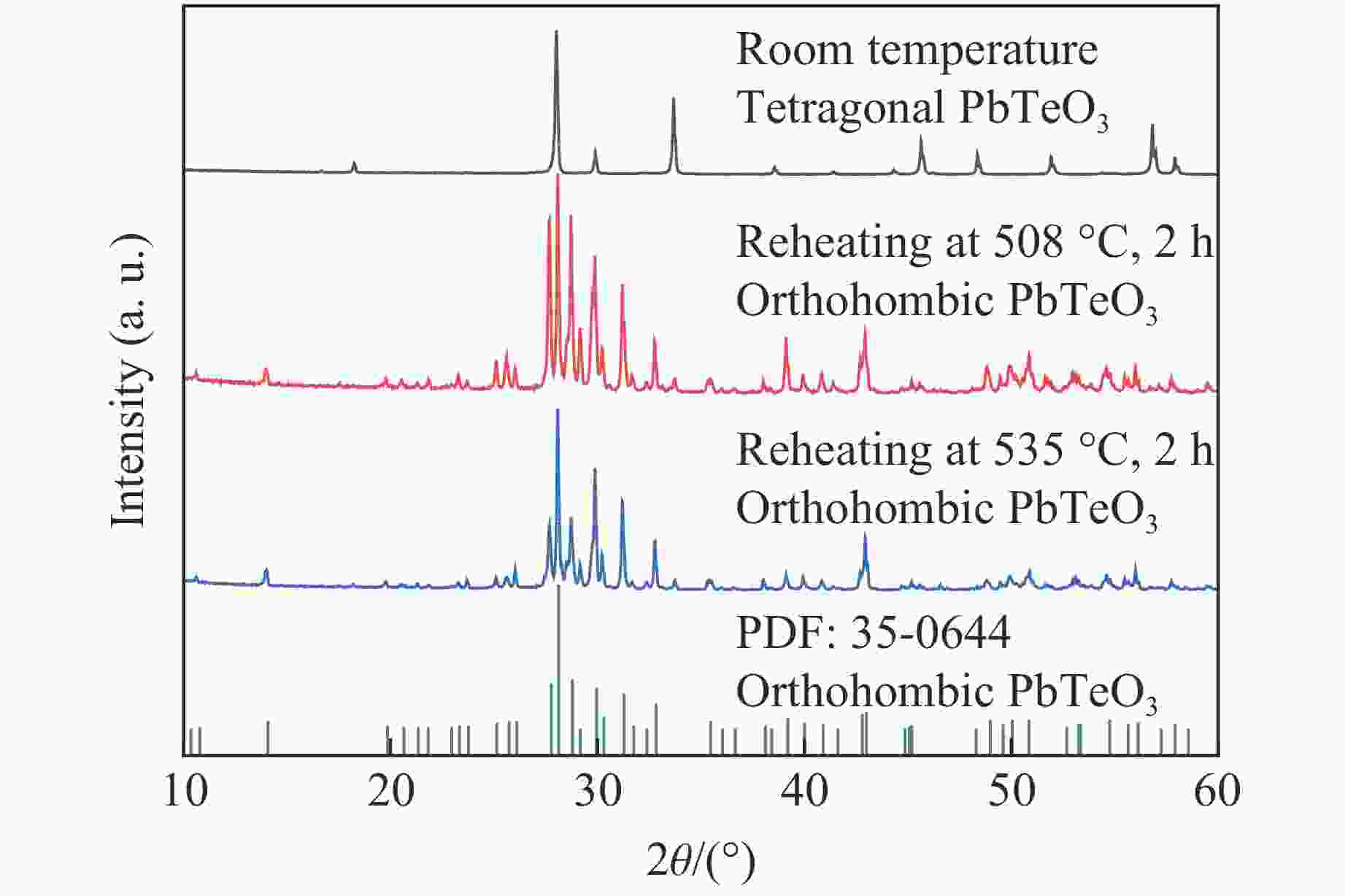 [1] SHIMONI-LIVNY L, GLUSKER J P, BOCK C W. Lone pair functionality in divalent lead compounds [J]. Inorganic Chemistry, 1998, 37(8): 1853–1867. doi: 10.1021/ic970909r [2] HAMANI D, MASSON O, THOMAS P. Localization and steric effect of the lone electron pair of the tellurium Te4+ cation and other cations of the p-block elements: a systematic study [J]. Journal of Applied Crystallography, 2020, 53(5): 1243–1251. doi: 10.1107/S1600576720010031 [3] PYYKKO P. Relativistic effects in structural chemistry [J]. Chemical Reviews, 1988, 88(3): 563–594. doi: 10.1021/cr00085a006 [4] WANG W D, WANG S M, HE D W, et al. Pressure induced phase transition of PbNiO3 from LiNbO3-type to perovskite [J]. Solid State Communications, 2014, 196(1): 8–12. [5] XIAO W S, TAN D Y, XIONG X L, et al. Large volume collapse observed in the phase transition in cubic PbCrO3 perovskite [J]. Proceedings of the National Academy of Sciences of the United States of America, 2010, 107(32): 14026–14029. doi: 10.1073/pnas.1005307107 [6] WANG W D, HE D W, XIAO W S, et al. Electrical characterization in the phase transition between cubic PbCrO3 perovskites at high pressures [J]. Chinese Physics Letters, 2013, 30(11): 117201. doi: 10.1088/0256-307X/30/11/117201 [7] KOHN K, INOUE K, HORIE O, et al. Crystal chemistry of MSeO3 and MTeO3 (M= Mg, Mn, Co, Ni, Cu, and Zn) [J]. Journal of Solid State Chemistry, 1976, 18(1): 27–37. doi: 10.1016/0022-4596(76)90075-X [8] LI Y, HAN Y H, MA Y Z, et al. Pressure effects on grain boundary, electrical and vibrational properties of the polycrystalline BaTeO3 [J]. Europhysics Letters, 2012, 98(6): 66006. doi: 10.1209/0295-5075/98/66006 [9] BALDINOZZI G, SCIAU P, MORET J, et al. A new incommensurate phase in a lead ordered perovskite: Pb2MgTeO6 [J]. Solid State Communications, 1994, 89(5): 441–445. doi: 10.1016/0038-1098(94)90209-7 [10] RAI R S, SHARMA S, CHOUDHARY R N P. Structural and electrical properties of magnesium tellurite ceramics [J]. Ferroelectrics, 2002, 275(1): 11–18. doi: 10.1080/00150190214284 [11] YAMADA T, AHAREN T, KANEMITSU Y. Near-band-edge optical responses of CH3NH3PbCl3 single crystals: photon recycling of excitonic luminescence [J]. Physical Review Letters, 2018, 120(5): 057404. doi: 10.1103/PhysRevLett.120.057404 [12] DITYATIEV O A, BERDONOSOV P S, DOLGIKH V A, et al. On the crystal structures of SrTeO3 [J]. Solid State Sciences, 2006, 8(7): 830–835. doi: 10.1016/j.solidstatesciences.2006.03.003 [13] RAI R, SHARMA S, CHOUDHARY R N P. Ferroelectric phase transition in calcium tellurite ceramics [J]. Journal of Materials Science Letters, 2002, 21(4): 297–299. doi: 10.1023/A:1017923820691 [14] POUPON M, BARRIER N, PETIT S, et al. Hydrothermal synthesis and dehydration of CaTeO3 (H2O): an original route to generate new CaTeO3 polymorphs [J]. Inorganic Chemistry, 2015, 54(12): 5660–5670. doi: 10.1021/acs.inorgchem.5b00037 [15] DITYAT’EV O A, STEFANOVICH S Y, PRITUZHALOV V A, et al. Dielectric and nonlinear optical properties of SrTeO3-based solid solutions [J]. Inorganic Materials, 2004, 40(7): 740–743. doi: 10.1023/B:INMA.0000034774.16227.cb [16] BERGMAN J G, BOYD G D, ASHKIN A, et al. New nonlinear optical materials: metal oxides with nonbonded electrons [J]. Journal of Applied Physics, 1969, 40(7): 2860–2863. doi: 10.1063/1.1658089 [17] WILLIAMS S A. Schieffelinite, a new lead tellurate-sulphate from Tombstone, Arizona [J]. Mineralogical Magazine, 1980, 43(330): 771–773. doi: 10.1180/minmag.1980.043.330.11 [18] WEIL M, SHIRKHANLOU M, FÜGLEIN E, et al. Determination of the correct composition of “hydrous lead (Ⅱ) oxotellurate (Ⅳ)” as PbTeO3, crystallizing as a new polymorph [J]. Crystals, 2018, 8(1): 51. doi: 10.3390/cryst8010051 [19] MARIOLACOS K. Die kristallstruktur von PbTeO3 [J]. Anzeiger der Österreichische Akademie der Wissenschaften Mathematisch-Naturwissenschatliche Klasse, 1969, 106(1): 129–130. [20] ROBERTSON D S, SHAW N, YOUNG I M. A study of crystals in the lead oxide/tellurium dioxide system [J]. Journal of Physics D: Applied Physics, 1976, 9(8): 1257. doi: 10.1088/0022-3727/9/8/012 [21] KOSSE L, POLITOVA E, BUSH A, et al. Growth and some peculiarities of beta-PbTeO3 single-crystals [J]. Kristallografiya, 1983, 28(3): 510–513. [22] YOUNG I M. The central region of the PbO-TeO2 phase diagram [J]. Journal of Materials Science, 1979, 14(7): 1579–1585. doi: 10.1007/BF00569277 [23] KOSSE L, POLITOVA E, ASTAF’EV A, et al. Growth and electrophysical properties of some Pb-Te-O single crystals [J]. Soviet Physics Solid State, 1983, 25(7): 1170–1171. [24] SCIAU P, LAPASSET J, MORET J. Structure de la phase quadratique de PbTeO3 [J]. Acta Crystallographica Section C: Crystal Structure Communications, 1986, 42(12): 1688–1690. doi: 10.1107/S0108270186090923 [25] GAITÁN M, JEREZ A, NOGUERALES P, et al. New methods of synthesis of mixed oxides of Te and Pb: characterization of the new phases PbTeO3 (cubic) and PbTeO4 (orthorhombic) [J]. Synthesis and Reactivity in Inorganic and Metal-Organic Chemistry, 1987, 17(5): 479–490. doi: 10.1080/00945718708070212 [26] STAVRAKIEVA D, IVANOVA Y, PYROV J. On the composition of the crystal phases in the PbO-TeO2 system [J]. Journal of Materials Science, 1988, 23(5): 1871–1876. doi: 10.1007/BF01115733 [27] MA Y, WANG W D, LIU Q J, et al. Raman studies in tetragonal structure PbTeO3 [J]. Solid State Communications, 2017, 260(1): 1–5. [28] MAO H K, XU J, BELL P M. Calibration of the ruby pressure gauge to 800 kbar under quasi-hydrostatic conditions [J]. Journal of Geophysical Research, 1986, 91(5): 4673–4676. [29] HEMLEY R J, ZHA C S, JEPHCOAT A P, et al. X-ray diffraction and equation of state of solid neon to 110 GPa [J]. Physical Review B: Condensed Matter and Materials Physics, 1989, 39(16): 11820–11827. doi: 10.1103/PhysRevB.39.11820 [30] FINGER L W, HAZEN R M, ZOU G, et al. Structure and compression of crystalline argon and neon at high pressure and room temperature [J]. Appli