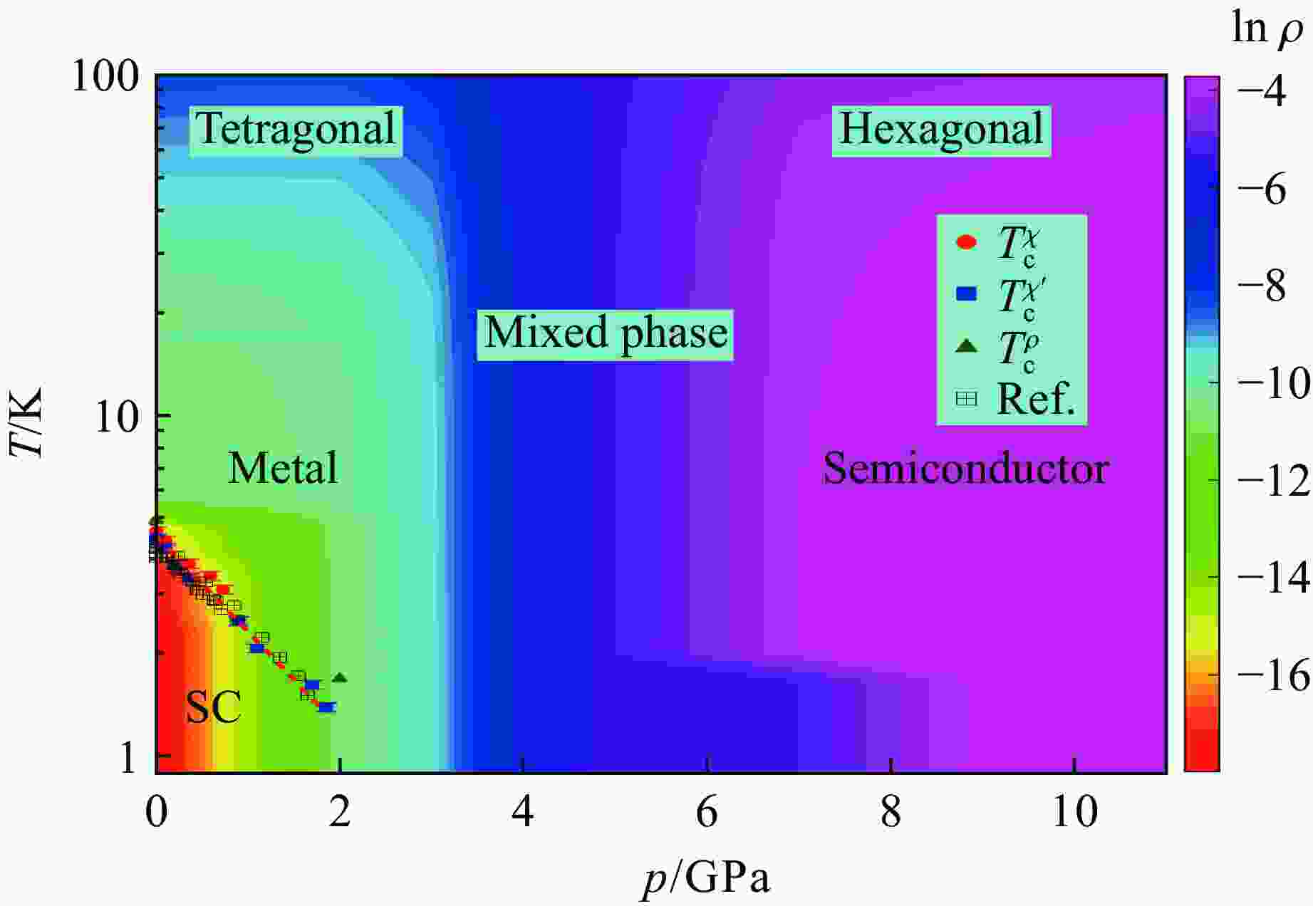 摘要: 高压调控在提高铁基超导体的临界温度(Tc)、揭示竞争电子序之间的联系以及超导机理等方面发挥了重要作用。大量的高压研究结果显示,不同的压力环境(静水压或非静水压)会造成材料物性的高压响应出现明显差异。目前,对四方相FeS超导体的高压研究结果仍存在分歧。为此,采用能够产生良好静水压环境的活塞-圆筒和六面砧压腔,详细测量了FeS单晶在0~11 GPa压力范围内的磁化率和电阻率,确认其Tc随压力升高而单调降低,压力系数dTc/dp约为−1.5 K/GPa,即约3 GPa的压力可完全抑制超导。当FeS单晶在4~5 GPa发生四方-六角结构相变时,电阻率的温度依赖关系由金属行为转变为半导体行为,且电阻率随着压力升高而逐步增大,在11 GPa以内没有出现第2个超导相,因此不支持FeS在高压下具有两个超导相的结论。最后,结合微观晶体结构信息,对比讨论了等结构的FeSe和FeS的物性在高压下迥异响应的物理机制。Abstract: High-pressure regulation has played an important role in enhancing the superconducting transition temperature (Tc) and revealing the competing electronic orders and superconducting mechanisms of iron-based superconductors. A large number of high-pressure studies have shown that different pressure conditions (hydrostatic vs. non-hydrostatic pressure) can make great differences in the physical properties of condensed matters under high pressure. To unveil the discrepancies of different high-pressure studies on tetragonal FeS, we performed high-pressure magnetic susceptibility and resistivity measurements on tetragonal FeS single crystal up to 11 GPa by using a piston-cylinder and a cubic anvil cell that can produce good hydrostatic pressures. It is found that its Tc decreases monotonically with increasing pressure with a slope of dTc/dp≈−1.5 K/GPa, which indicates that the superconductivity can be completely suppressed at about 3 GPa. When the tetragonal-hexagonal structural phase transition occurs at about 4−5 GPa, the temperature-dependent resistivity changes from metallic to semiconducting behavior, and the resistivity shows continuous increase upon further increasing pressure. No second superconducting phase was observed up to 11 GPa, and our results thus do not support the conclusion that FeS has two superconducting phases at high pressure. Finally, in light of the structural information under pressure, we discussed briefly the underlying mechanism for the distinct pressure evolutions of the physical properties in FeS and FeSe.