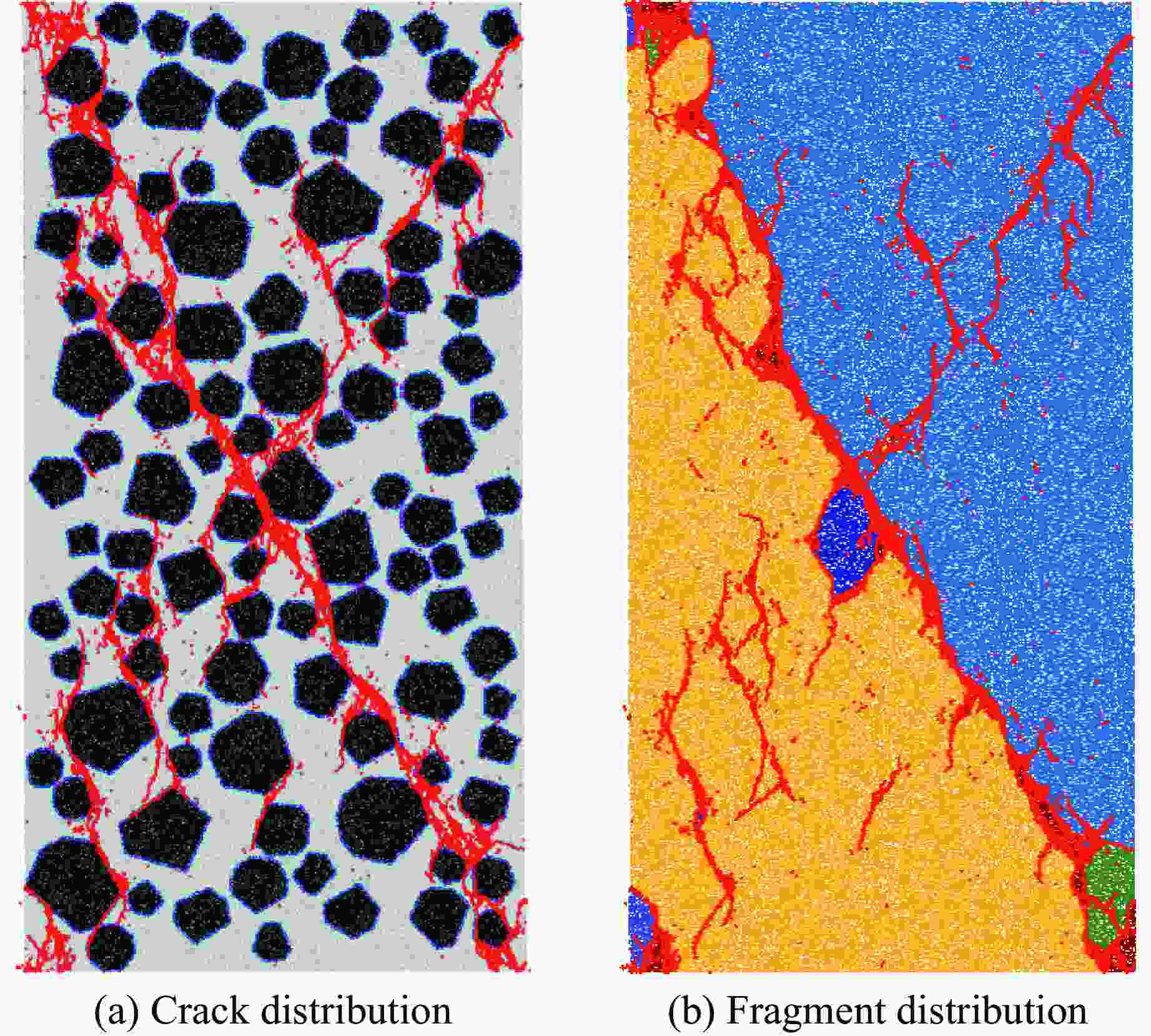 摘要: 混凝土是由水泥砂浆、粗骨料和界面过渡区(interfacial transition zone, ITZ)组成的非均质复合材料。ITZ作为混凝土内部的最薄弱相,对混凝土的宏观断裂有重要影响。基于PFC 2D的FISH语言,建立了能反映混凝土骨料、水泥砂浆和ITZ等复杂细观结构的离散元模型,并探讨了在单轴压缩载荷下ITZ强度分布和强度值对混凝土裂纹扩展过程的影响。数值模拟结果表明:混凝土裂纹遵循从中心向加载端扩展的趋势,超过80%的裂纹出现在峰值应力后的软化阶段;ITZ强度分布对混凝土裂纹扩展过程影响较弱,当ITZ强度呈现U形分布时,混凝土中裂纹数量较多;ITZ强度值对混凝土断裂程度及最终断裂形式影响显著,当ITZ的最小黏结强度与砂浆黏结强度比p<0.5时,混凝土强度显著降低,且裂纹围绕混凝土模型中心分散扩展形成网状宏观裂纹,导致试件发生散碎破坏,当p>0.6时,裂纹从混凝土试样中心向加载端集中扩展形成宏观贯通裂纹,导致试件发生块状破坏。Abstract: Concrete is a heterogeneous composite material composed of coarse aggregate, mortar and interfacial transition zone (ITZ). ITZ is the weakest phase inside the concrete and has a significant effect on the macroscopic fracture process of concrete. To respectively explore the effects of the distribution and value of ITZ strength on the crack propagation process in concrete under uniaxial compression, a discrete element model that reflects complex mesostructures of concrete aggregate, mortar and ITZ is established in PFC 2D by the use of FISH code. The numerical simulation results showed that cracks follow the propagation order from the centre of concrete to the loading end during the crack propagation process, and more than 80% of cracks appear in the softening stage after peak stress. The ITZ strength distribution has a weak effect on the crack propagation process in concrete, and the number of cracks in concrete is large when the ITZ strength shows a U shape distribution. The decrease in ITZ strength value leads to a gradual increase in the number and range of cracks. When the ratio of the minimum bond strength of ITZ to the bond strength of mortar p<0.5, the concrete strength is significantly reduced and the cracks expand around the centre of the concrete model to form a network macro-crack, resulting in scattered fracture failure. When p>0.6, the cracks expand from the centre of the concrete specimen to the loading end to form a macroscopic penetration crack, resulting in block fracture failure.