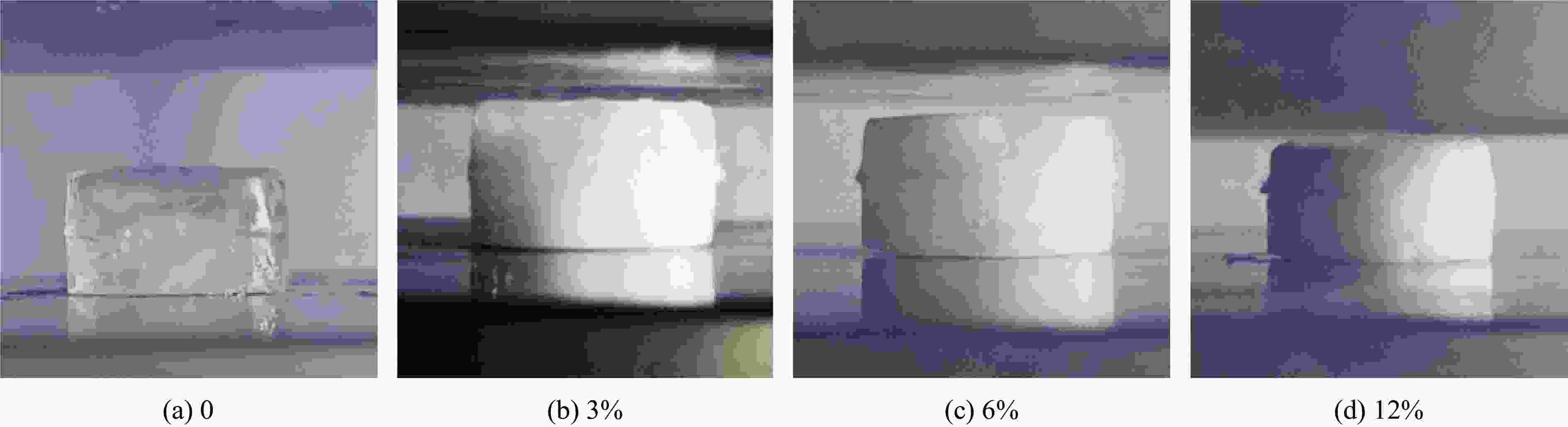 Hail diameter/mm Hail mass/g Cotton fiber mass fraction/% Cotton fiber mass/g Error/% Temperature/℃ 13 1.0 12 0.14 ±30 −18 25 8.2 12 1.00 ±30 −18 50 66.4 12 8.00 ±30 −18 表 2 人工制备圆柱冰尺寸