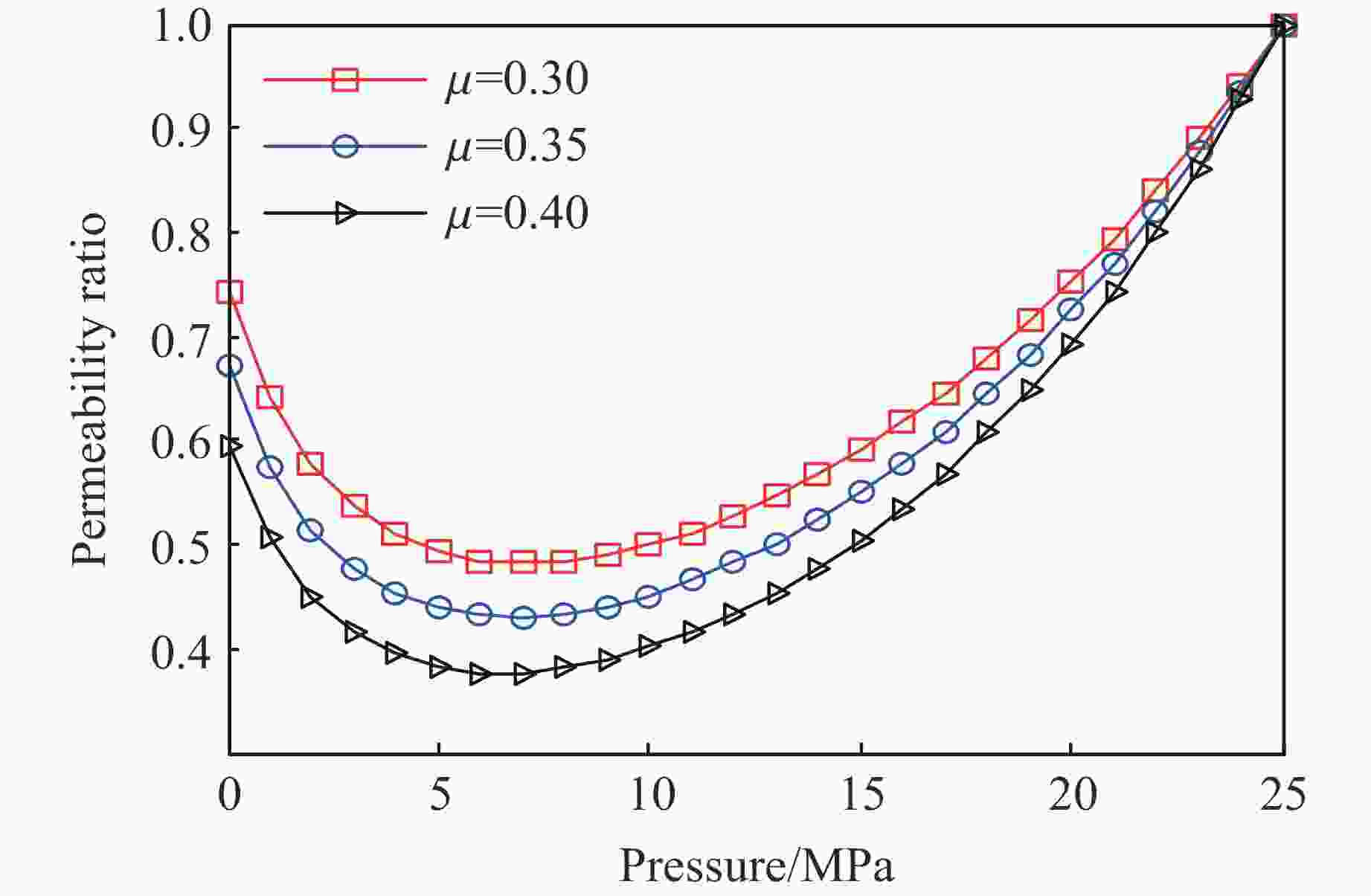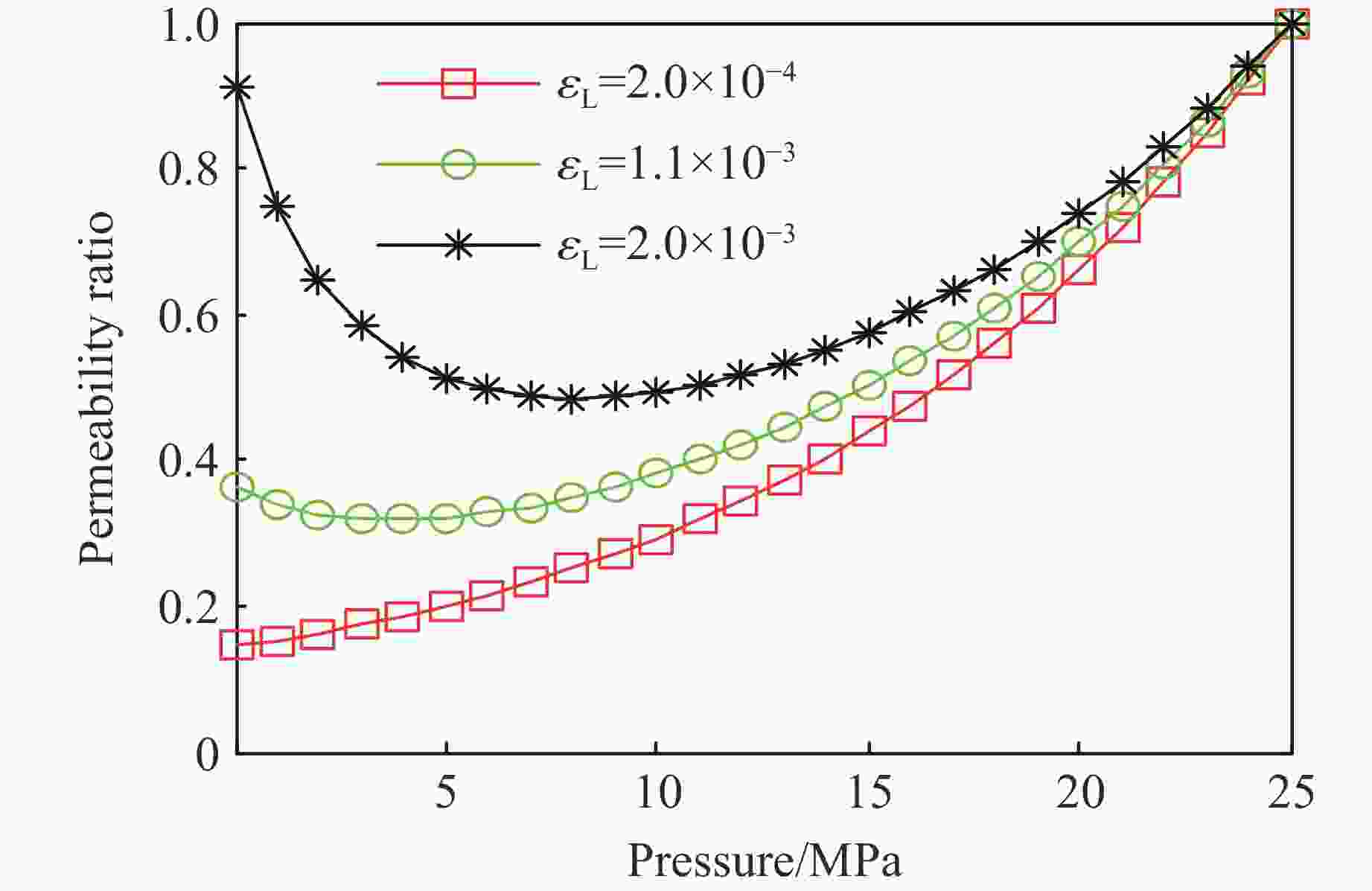 摘要: 为了研究热-流-固耦合作用下页岩渗透率的演化机制,考虑热解吸、有效应力和热膨胀对页岩渗透率的影响,提出了页岩的有效应力-渗透率模型,该模型能够分析吸附应变和热膨胀应变对页岩渗透率的影响机制。基于该模型和多孔介质弹性理论,建立了单轴应变条件下页岩气储层的热解吸渗透率模型,该模型能够探讨页岩渗透率随温度和孔隙压力的演化规律。利用室内实验观测的页岩岩样渗透率实验数据,验证了该模型的有效性和准确性。结果表明:(1)热解吸渗透率模型能较好地拟合恒压变温条件下的Marcellus页岩渗透率。(2) 探讨了恒温条件下页岩渗透率随孔压的演化机制,发现恒温条件下渗透率的演化规律呈“U形”,温度越高,渗透率随孔压下降的反弹现象越不明显。(3) 分析了恒压条件下页岩渗透率随温度的演化机制,发现恒压条件下渗透率随温度的演化规律呈“倒U形”,孔隙压力越大,温度对渗透率的影响越小。(4) 分别在恒温和恒压条件下对热解吸渗透率模型进行敏感性分析,发现泊松比越大,渗透率比值梯度越大,孔隙体积模量越大,渗透率比值梯度越小。恒压条件下,当线胀系数大于临界值或朗缪尔体应变小于临界值,渗透率的演化规律不呈现“倒U形”。恒温条件下,当朗缪尔体应变小于临界值时,渗透率的演化规律不呈现“U形”。Abstract: In order to study the evolution mechanism of shale permeability under thermal-fluid-solid coupling, the effective stress-permeability model of shale is developed considering the impact of thermal desorption and effective stress and thermal expansion on shale permeability. The proposed model is capable of revealing the influence mechanism of sorption strain and thermal expansion strain on shale permeability. Based on the model and the elastic theory of porous media, the thermal induced desorption permeability model of shale gas reservoirs under uniaxial strain condition was established. The model can discuss the evolution mechanism of shale permeability with temperature and pore pressure. The validity and accuracy of the model was verified against the laboratory measurements of shale core permeability. The following results were obtained: (1) The thermal induced desorption permeability model can fit the permeability of Marcellus shale under constant pressure and variable temperature. (2) The evolution mechanism of shale permeability with pore pressure under constant temperature is explored. The evolution law of permeability under constant temperature is U-shaped. The rebound of permeability with pore pressure decrease is less obvious with the increase of temperature. (3) The evolution mechanism of shale permeability with temperature under constant pressure condition is analyzed. The evolution law of permeability with temperature under constant pressure condition presents an inverted “U” shape. The influence of temperature on permeability is less with the increase of pore pressure. (4) The sensitivity analysis of thermal desorption permeability model under constant temperature and pressure was carried out. The larger the Poisson’s ratio is, the larger the permeability ratio gradient is. The larger the pore volume modulus, the smaller the permeability ratio gradient. At constant pore pressure, when the linear expansion coefficient is larger than the critical value or the Langmuir bulk strain is smaller than the critical value, the permeability evolution does not show an inverted “U” shape. At constant temperature, when Langmuir strain is less than critical value, permeability evolution does not show “U” shape.