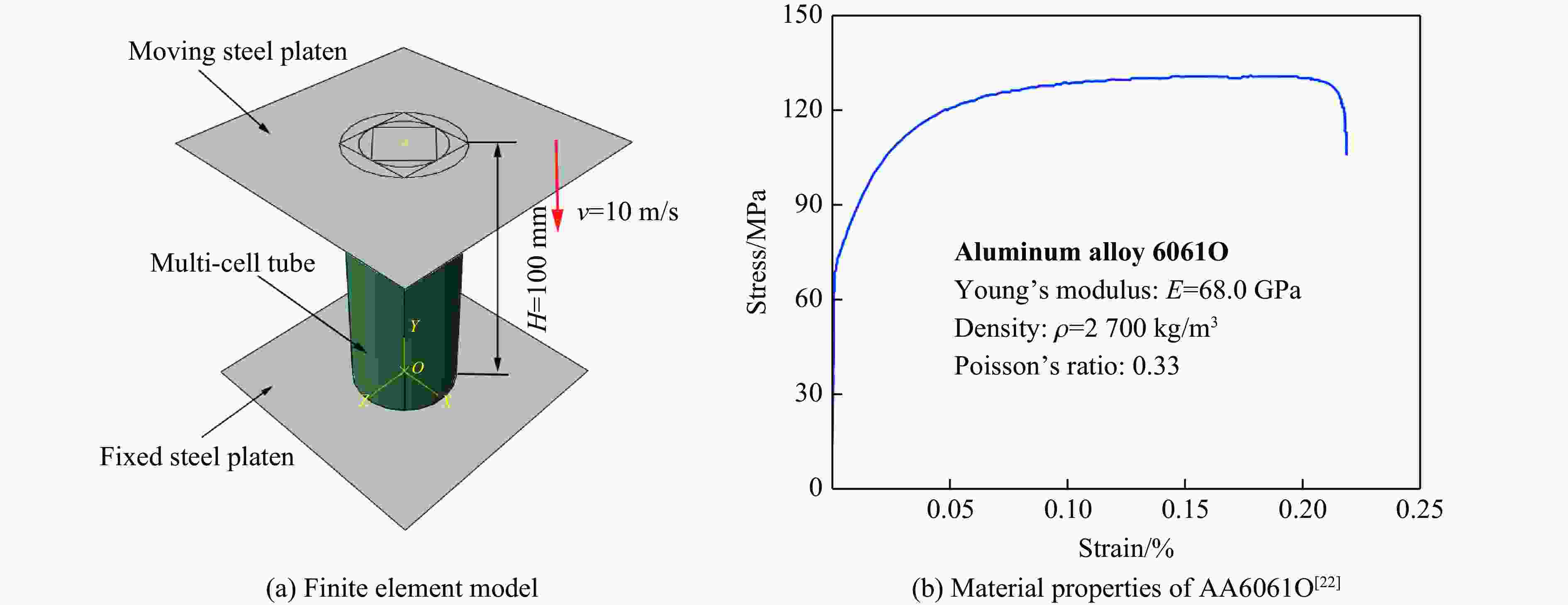 摘要: 将层级和嵌套相结合,设计了两种不同类型和嵌套方式的圆形嵌套层级多胞管,采用数值模拟方法对其轴向冲击下的吸能特性开展了系统的研究。研究结果表明,无论是相同壁厚还是相同质量,高层级多胞管相比低层级多胞管都具有更好的能量吸收能力。相同壁厚情况下,高层级多胞管的比能量吸收和冲击力效率最高分别高出22.49%和16.55%,与传统圆管相比,层级多胞管的比能量吸收和冲击力效率最高分别高出43.16%和36.45%。相同质量情况下,高层级多胞管的比能量吸收和冲击力效率最高分别提升了21.04%和24.47%。最后,系统地开展了层级数、壁厚等结构参数对圆形嵌套层级多胞管耐撞性的参数化研究。Abstract: Combining hierarchy with nested, two kinds of circular nested hierarchical multi-cell tubes with different nested methods were designed innovatively. The energy absorption characteristics under axial impact were studied by numerical simulation. The results show that the high-level multi-cell tubes have better energy absorption capacity than the low-level multi-cell tubes, regardless of the same wall thickness or the same mass. Under the same wall thickness, the specific energy absorption and crush force efficiency of high-level multi-cell tubes increased by 22.49% and 16.55%, respectively. Compared with the traditional circular tube, the specific energy absorption and impact efficiency of the multicellular tube were 43.16% and 36.45% higher, respectively. Under the same mass condition, the specific energy absorption and crush force efficiency of high-level multi-cell tubes were increased by 21.04% and 24.47%, respectively. Finally, the crashworthiness of circular nested hierarchical multi-cell tubes was studied systematically by the by used structural parameters such as layer number and wall thickness.
