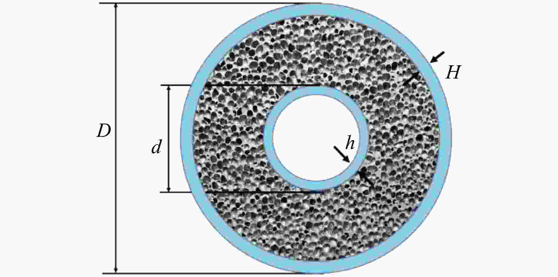 R/mm Ws/g p0/MPa Et/J Ea/(J·g−1) wo/mm wi/mm 37 30 34.9 935.594 0.753 14.96 4.34 40 30 27.7 542.923 0.437 10.06 2.45 40 35 32.3 776.974 0.625 12.60 3.62 40 40 36.8 1058.910 0.852 16.20 4.98 43 30 22.4 312.212 0.251 5.92 1.54 表 8 泡沫铝夹芯管组成部分的吸能百分比