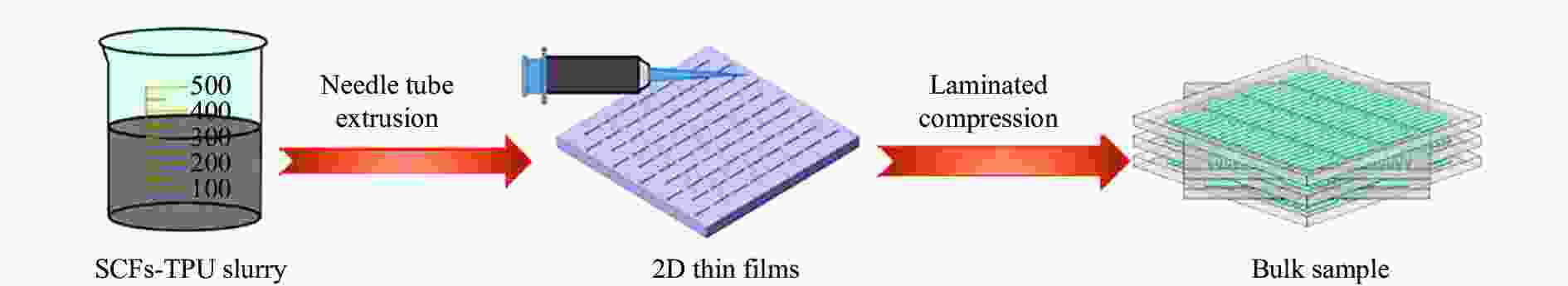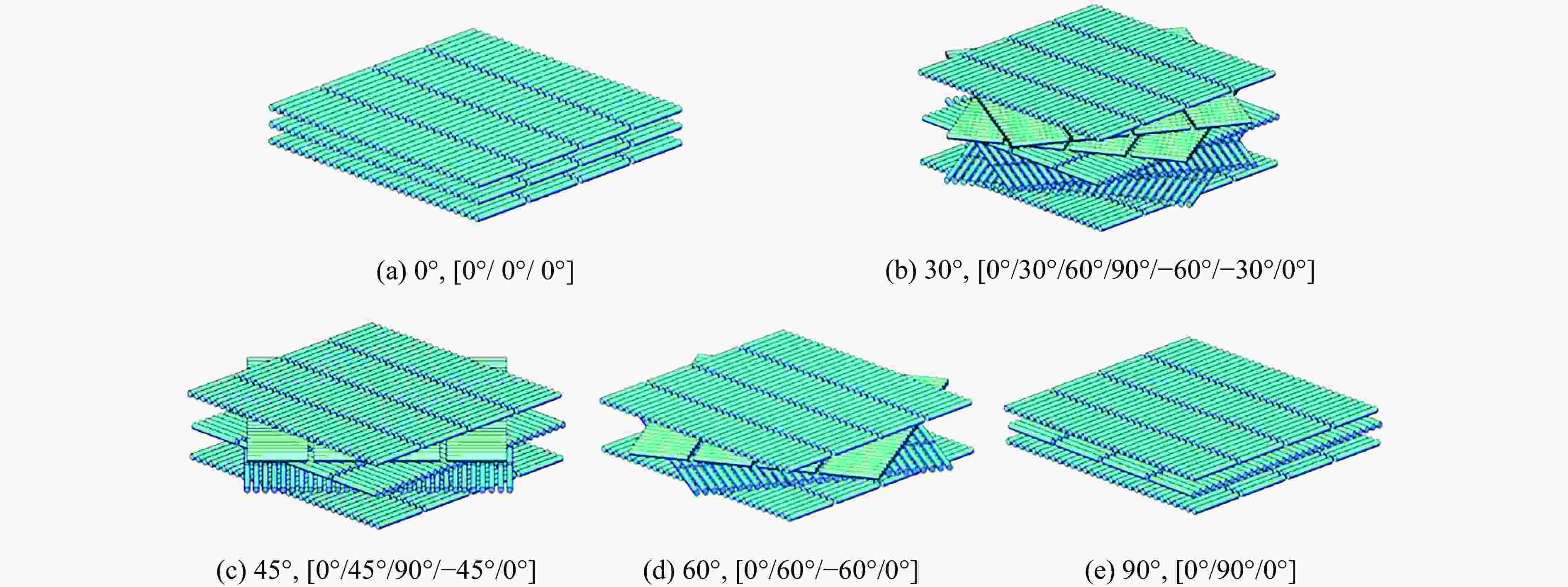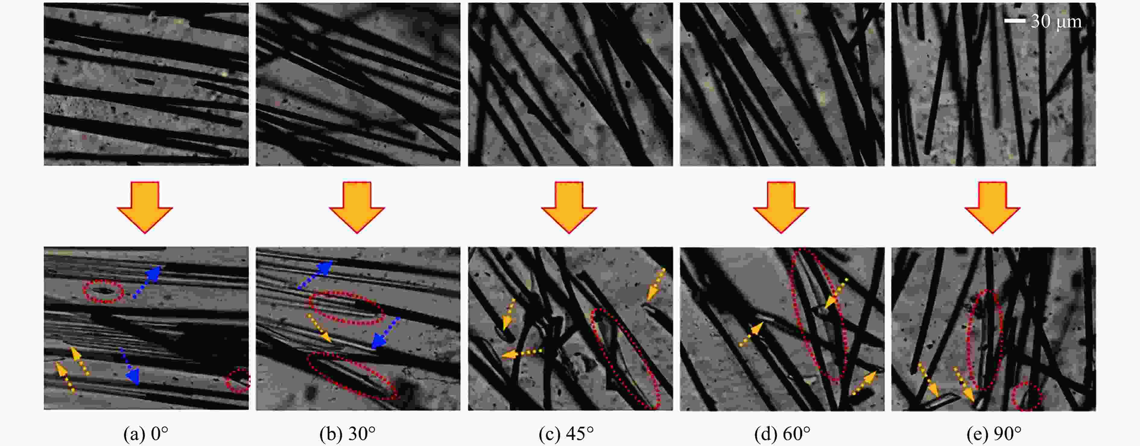 摘要: 在自然进化中,众多生物材料因其内部多级结构的精巧配合表现出卓越的力学性能。碳纤维作为一种性能优异的人工材料,为仿生材料设计与制备提供了重要的原材料支撑。以短碳纤维和聚氨酯为原料,发展了一种针管挤制和蒸发固化方法,制备出具有特定纤维取向的短碳纤维增强聚氨酯复合材料薄膜,利用叠层固化成型方法,制备出具有不同层间夹角的仿螳螂虾螺旋叠层结构材料。在此基础上,通过拉伸性能测试及拉伸过程中材料内部微观形貌表征,对该仿生材料的力学增强机理进行研究。结果表明:短碳纤维在薄膜材料中具有良好的取向一致性,当纤维取向角为45°时,单层薄膜的拉伸强度最高;在螺旋叠层结构中,当层间夹角为30°时,仿生材料的拉伸强度最高,这主要是由材料内部纤维端部引起的损伤破坏以及界面脱粘引起的失效破坏所调控。研究结果对于设计和制备高性能短纤维增强复合材料、实现其性能优化具有指导意义。Abstract: In natural evolution, numerous biomaterials exhibit astonishing mechanical properties due to the exquisite coordination of their internal structures at all levels. Carbon fiber, as an excellent artificial material, provides an important raw material support for the design of biomimetic materials. This study uses short carbon fibers and polyurethane as raw materials, combined with a syringe extrusion and thermal evaporation methods to prepare short carbon fiber reinforced polyurethane composite film with specific fiber orientation. Then, a spiral layered structure material resembling mantis shrimp with different interlayer angles was prepared using laminated assembly method. In addition, the mechanical strengthening mechanism of the material was studied by observing its morphology characteristics before and after stretching and measuring its tensile strength. The results show that short carbon fibers have good orientation consistency in thin film materials. When the fiber orientation angle is 45°, the tensile strength of the thin film material is the highest; when the interlayer angle is 30°, the tensile strength of short carbon fiber reinforced polyurethane biomimetic spiral structure material is the highest. The results of this study are of guiding significance for the design and preparation of high-performance short fiber reinforced composite materials, and for achieving their performance biomimetic optimization.