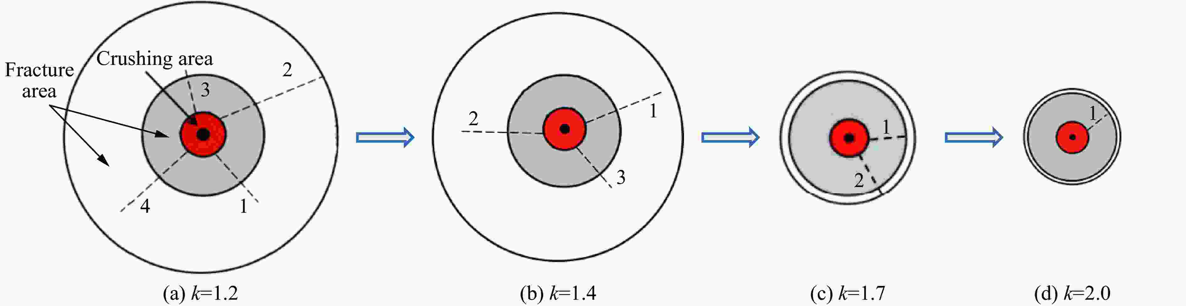 radius/cmRadius of circumferential crack zone/cm Maximum length of radial crack/cm x-axis y-axis Diagonal 1 Diagonal 2 Average Crack 1 Crack 2 Crack 3 Crack 4 Average 1.2 1.2 3.8 3.4 3.6 3.7 3.6 7.2 9.4 6.9 7.7 7.8 1.4 1.0 3.6 3.1 3.1 3.2 3.3 7.9 6.3 5.8 6.7 1.7 0.8 3.4 3.1 3.0 2.8 3.1 3.3 5.3 4.3 2.0 0.6 2.9 2.8 3.3 2.5 2.9 3.5 3.5 -