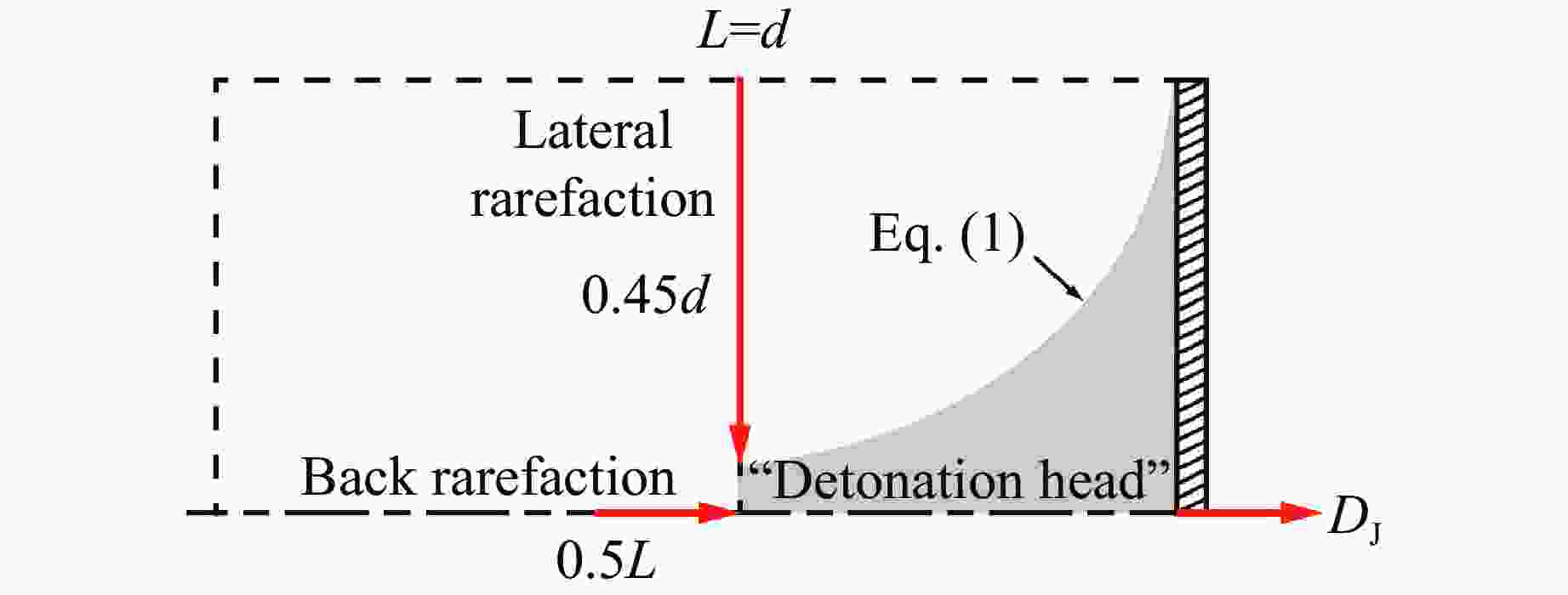 摘要: 为确定六硝基茋基PBX-1炸药产物的状态方程参数,采用平面波透镜加载和激光干涉测速技术,测量了在长度不同、直径为6 mm的PBX-1炸药药柱爆轰驱动下金属平板的自由面速度变化历程。实验结果表明:PBX-1炸药的爆轰波传播速度约为6798.2 m/s,且炸药的长径比对驱动平板的有效装药量有显著影响;与长径比为1的情况相比,长径比为2时PBX-1炸药驱动平板的有效装药量更小,导致金属平板的最大运动速度降低,但是在驱动平板过程中,金属平板受平面波透镜加载边界的影响较小。基于实验数据,开展了长径比为2的PBX-1炸药爆轰驱动平板的数值模拟,确定了PBX-1炸药爆轰产物的状态方程参数,计算得到的平板自由面速度变化历程与实验结果吻合较好。研究结果可为冲击片雷管的可靠性评估提供重要的基础参数。Abstract: To determine the parameters of equation of state for detonation products of the HNS-based explosive PBX-1, the plane wave lens and the photonic Doppler velocimetry (PDV) were used to measure the free surface velocity histories of metal plates driven by the PBX-1 explosives. The explosive samples had diameters of 6 mm and different lengths. According to the experimental results, the detonation velocity of PBX-1 is about 6798.2 m/s, and the effective explosive volume is obviously affected by the ratio of length to diameter of explosive sample. Compared with the sample with the ratio equal to 1, the effective explosive volume of the sample with the ratio equal to 2, leads to a lower maximum plate velocity. The plate driven by the longer explosive sample is less affected by the initiation boundary of plane wave lens. Therefore, the experimental result obtained by the longer explosive sample was used to determine the detonation products’ parameters of equation of state by numerical simulation. The simulation showed that the simulated free surface velocity history is in good agreement with the experimental result. The obtained detonation products’ parameters of equation of state provides fundamental data for reliability assessment of slapper detonator.