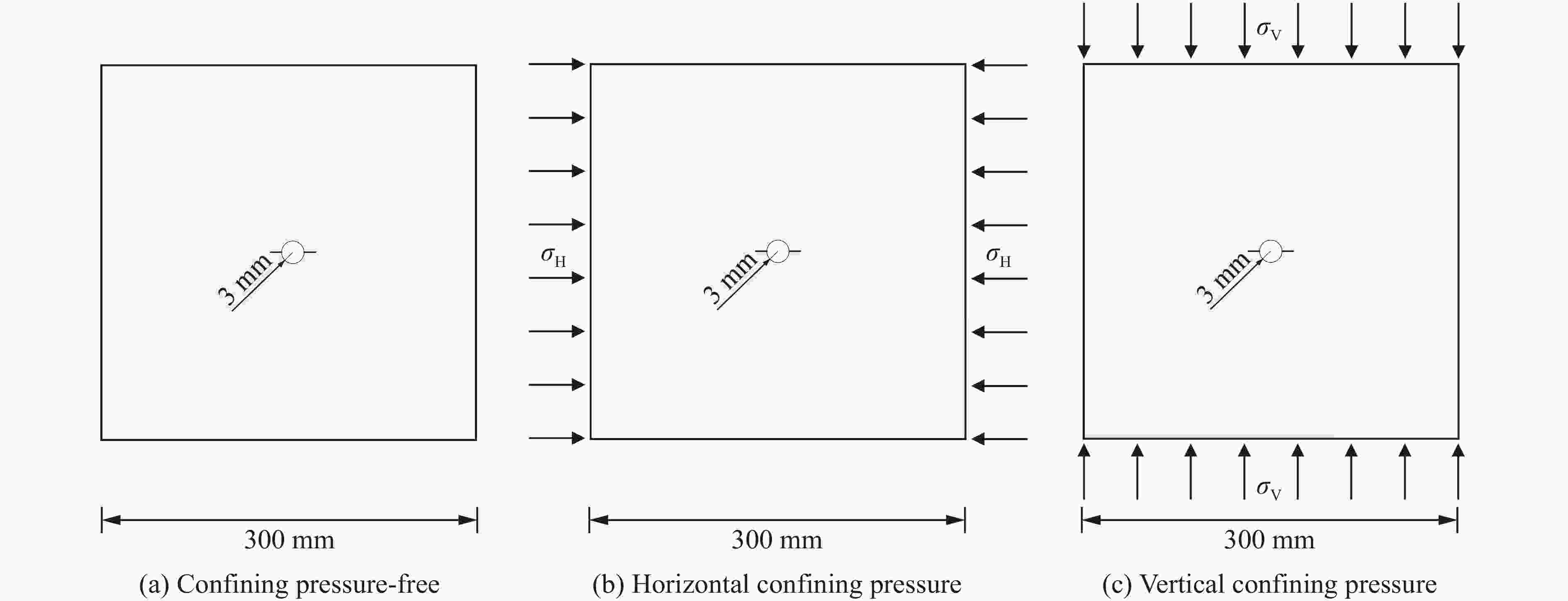 Scheme Confining pressure design/MPa Actual loading/MPa $ {\sigma }{_{\rm H}} $ $ {\sigma }{_{\rm V}} $ $ \mathrm{\sigma}{_{\mathrm{H}}} ' $ $ \mathrm{\sigma}{_{\mathrm{V}}} ' $ M-1 0 0 0 0 M-2 1 0 3.3 0 M-3 2 0 6.6 0 M-4 0 1 0 3.3 M-5 0 2 0 6.6 表 4 爆生主裂纹长度