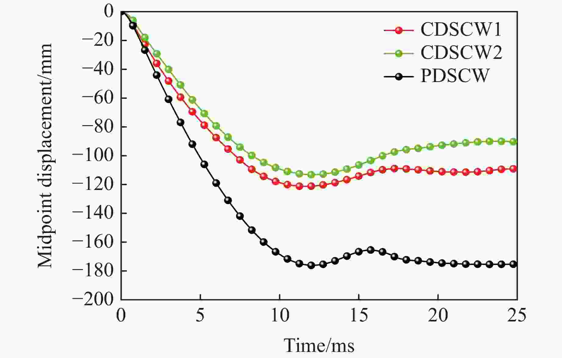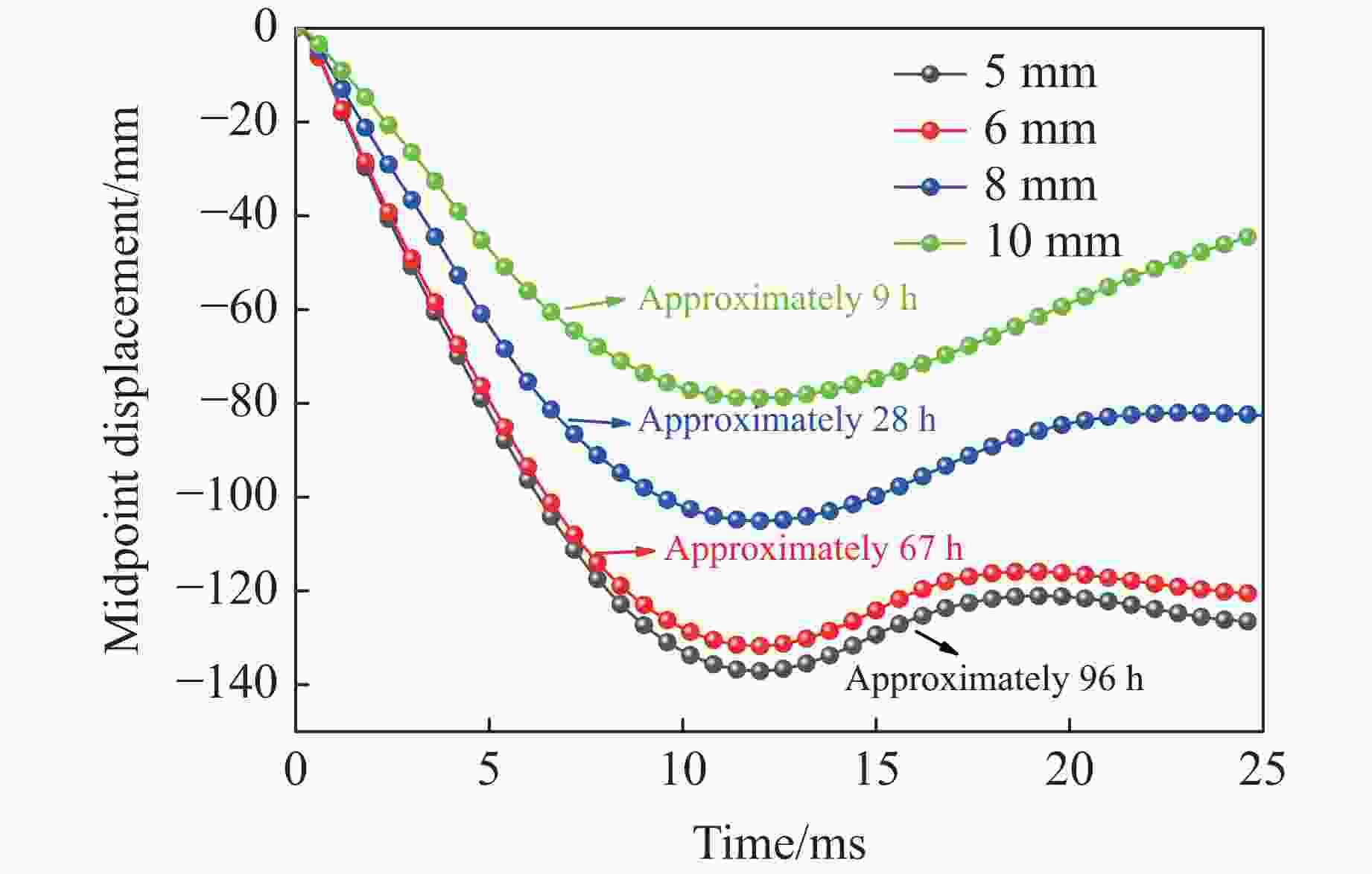 图  19  不同混凝土厚度下CDSCW的跨中位移-时间变化曲线