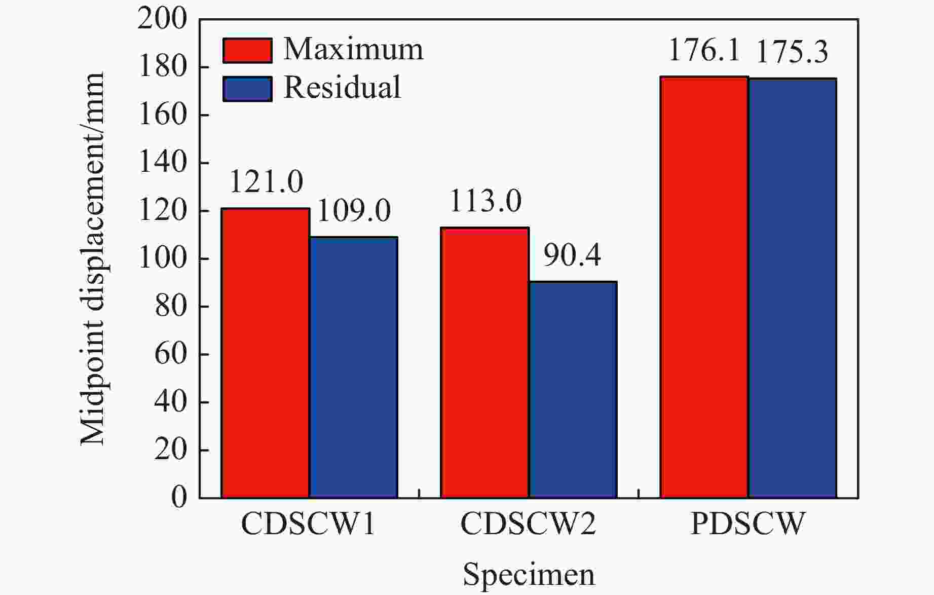 Figure  17.  Maximum and residual midpoint displacements of CDSCW and PDSCW