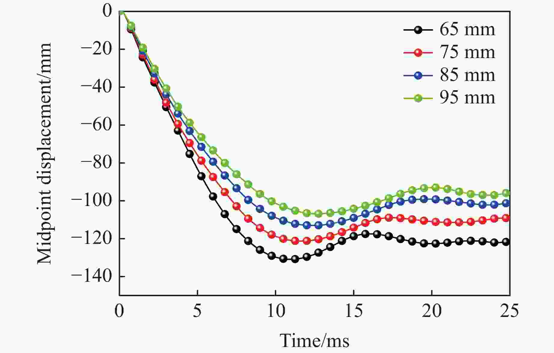 Figure  22.  Midpoint displacement-time curves of CDSCW with different steel thicknesses