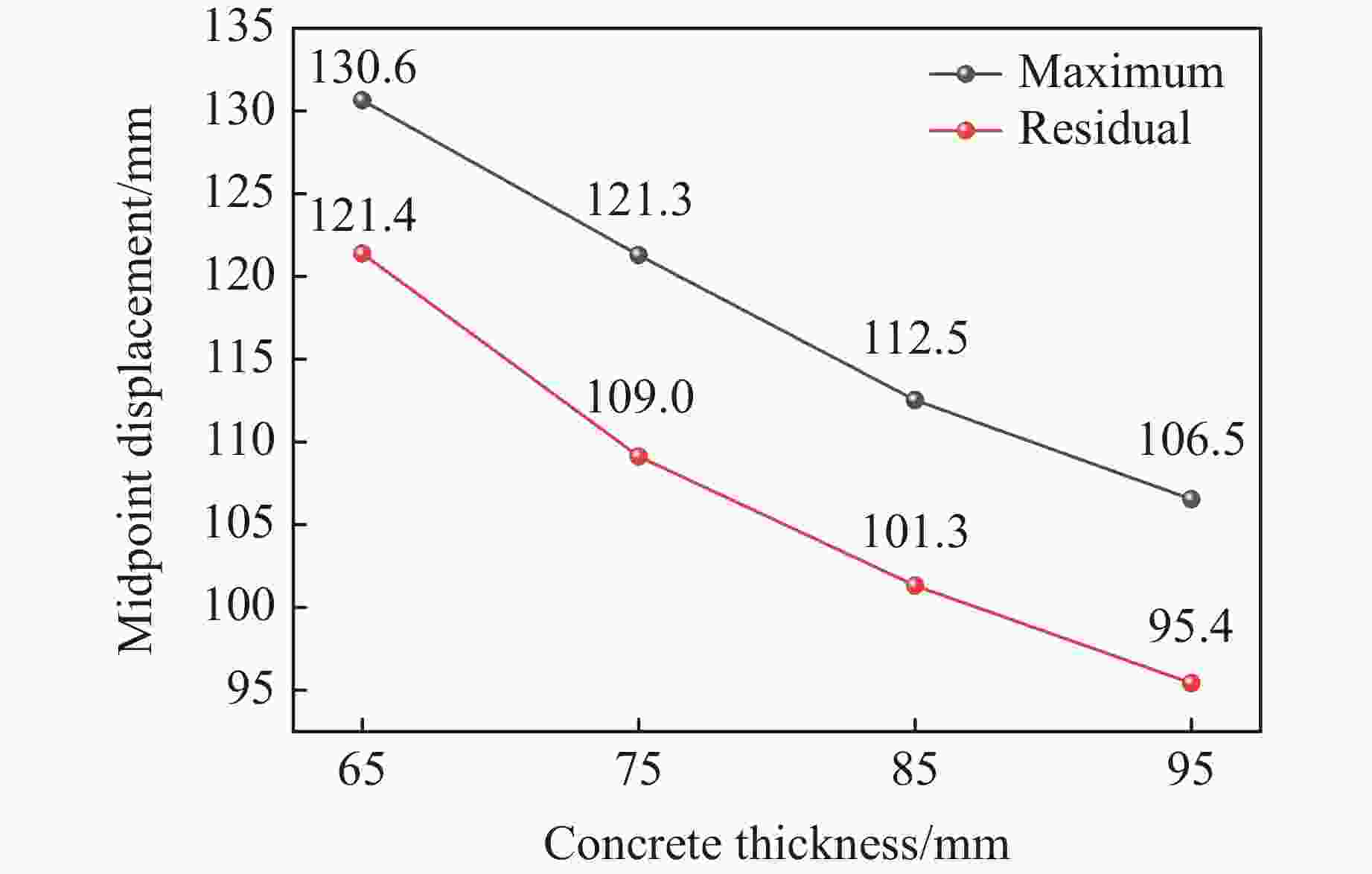 Figure  20.  Maximum and residual midpoint displacements of CDSCW with different concrete thicknesses