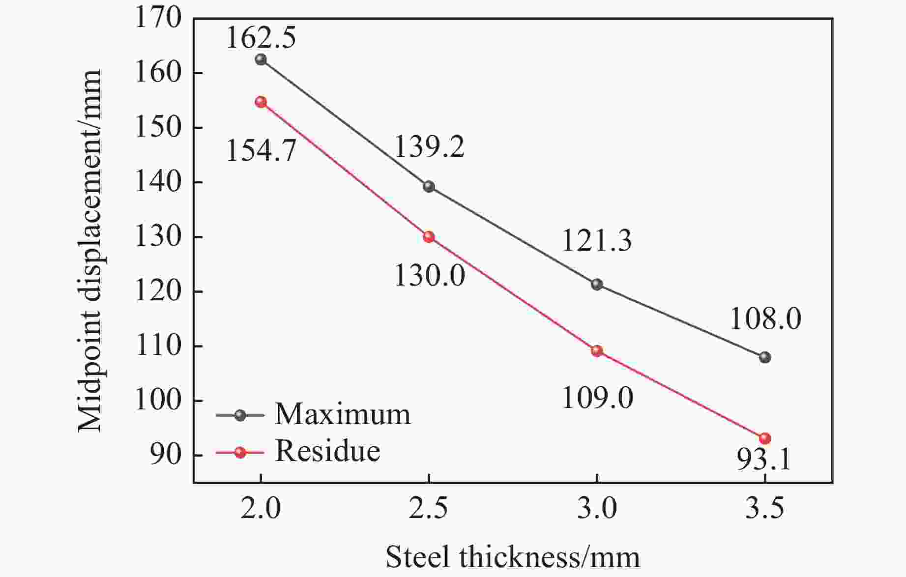 Figure  23.  Maximum and residual midpoint displacements of CDSCW with different steel thicknesses