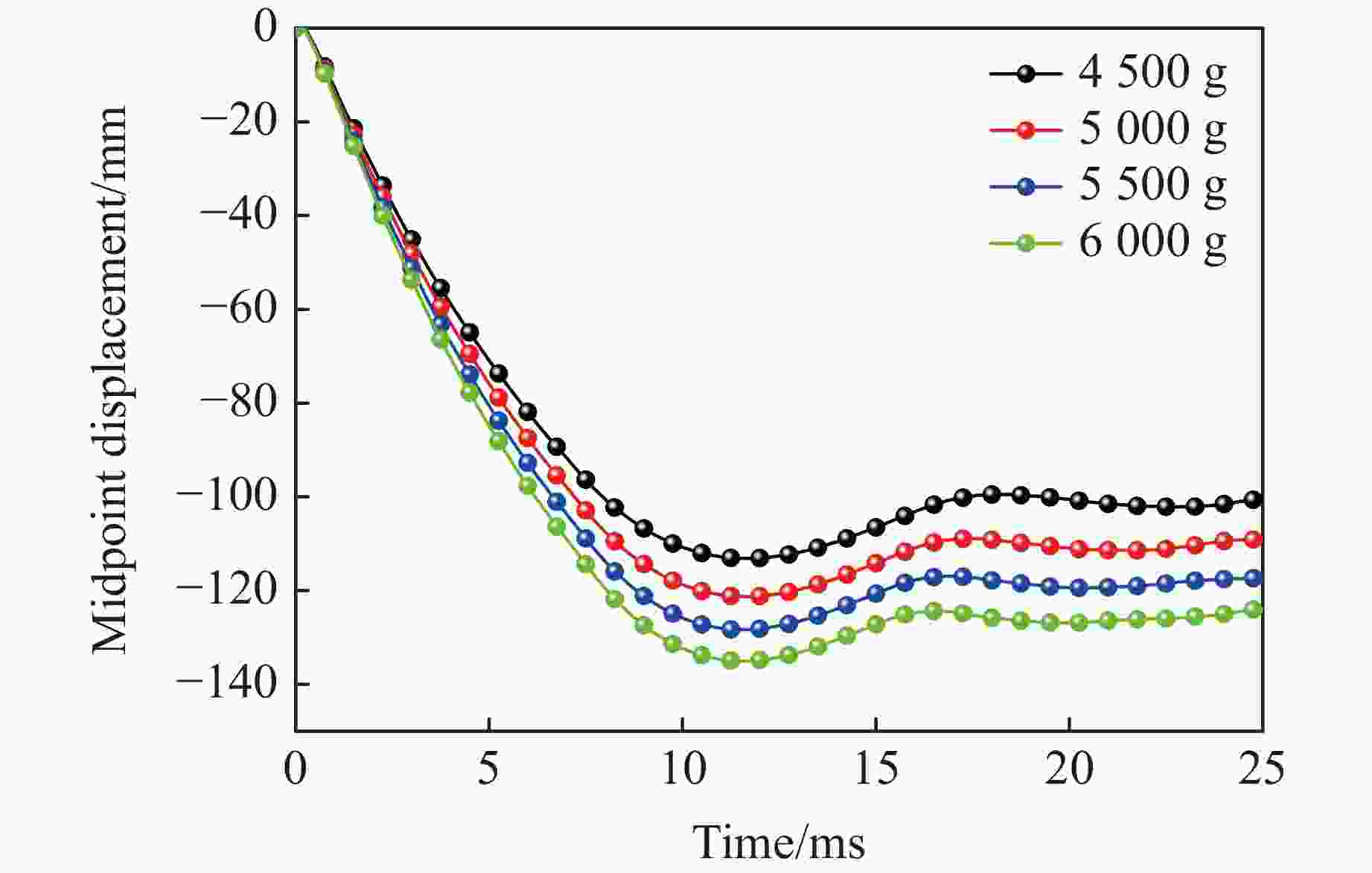 Figure  25.  Midpoint displacement-time curves of CDSCW under different TNT quantities