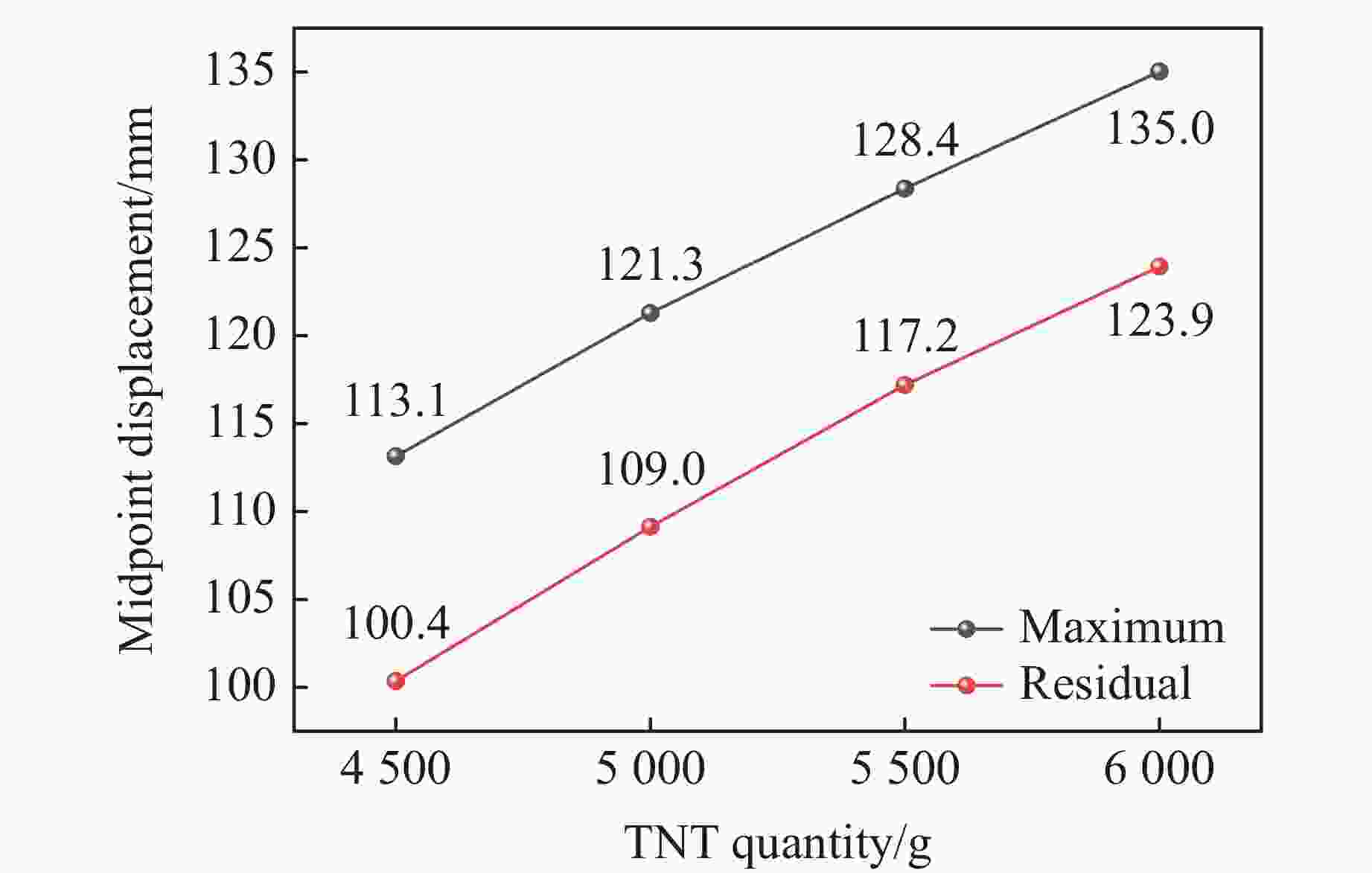 Figure  26.  Maximum and residual midpoint displacements of CDSCW under different TNT quantities