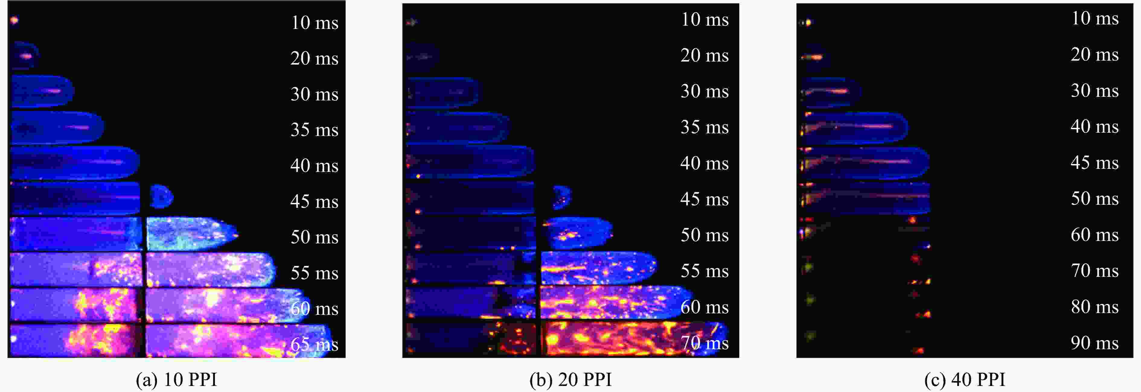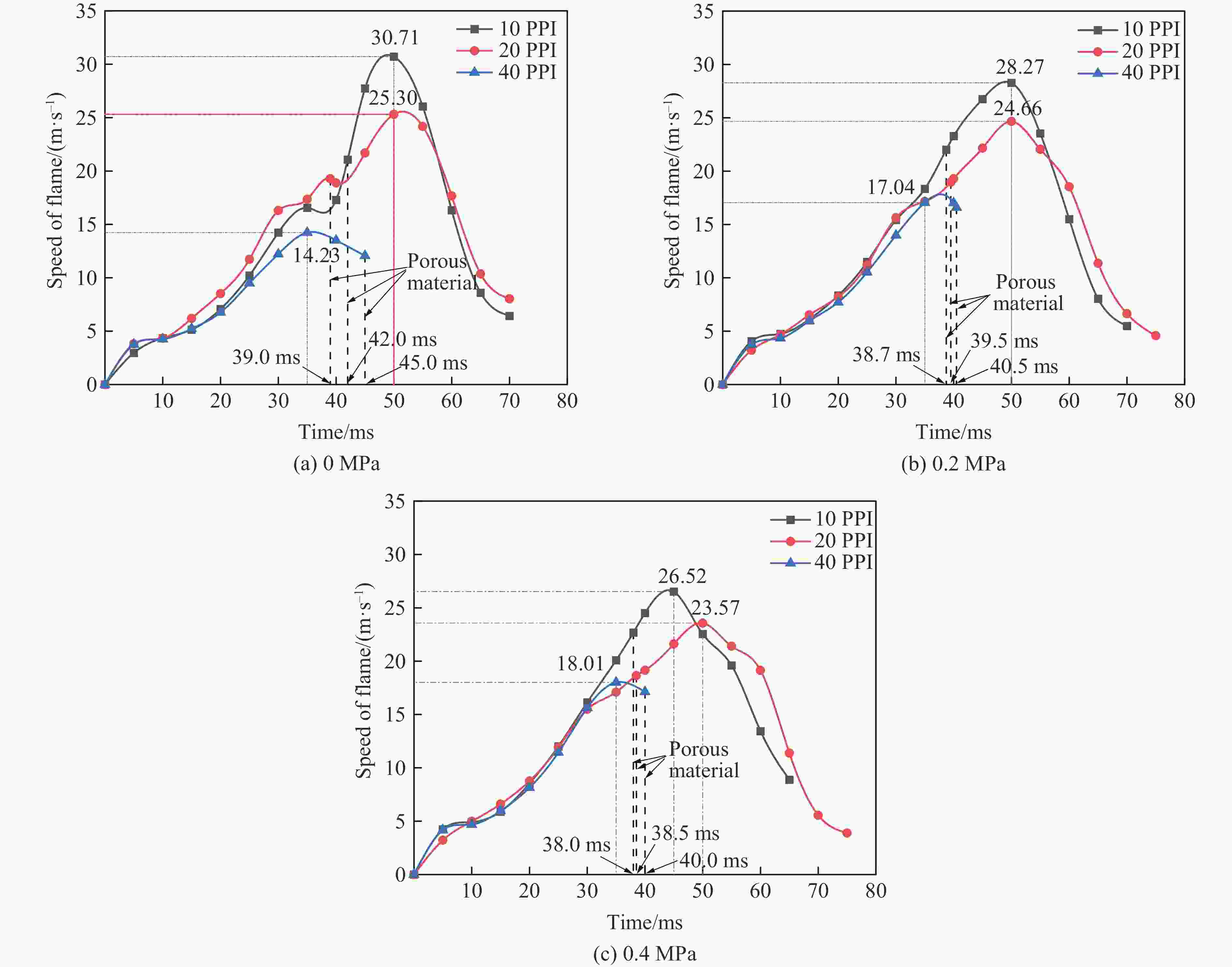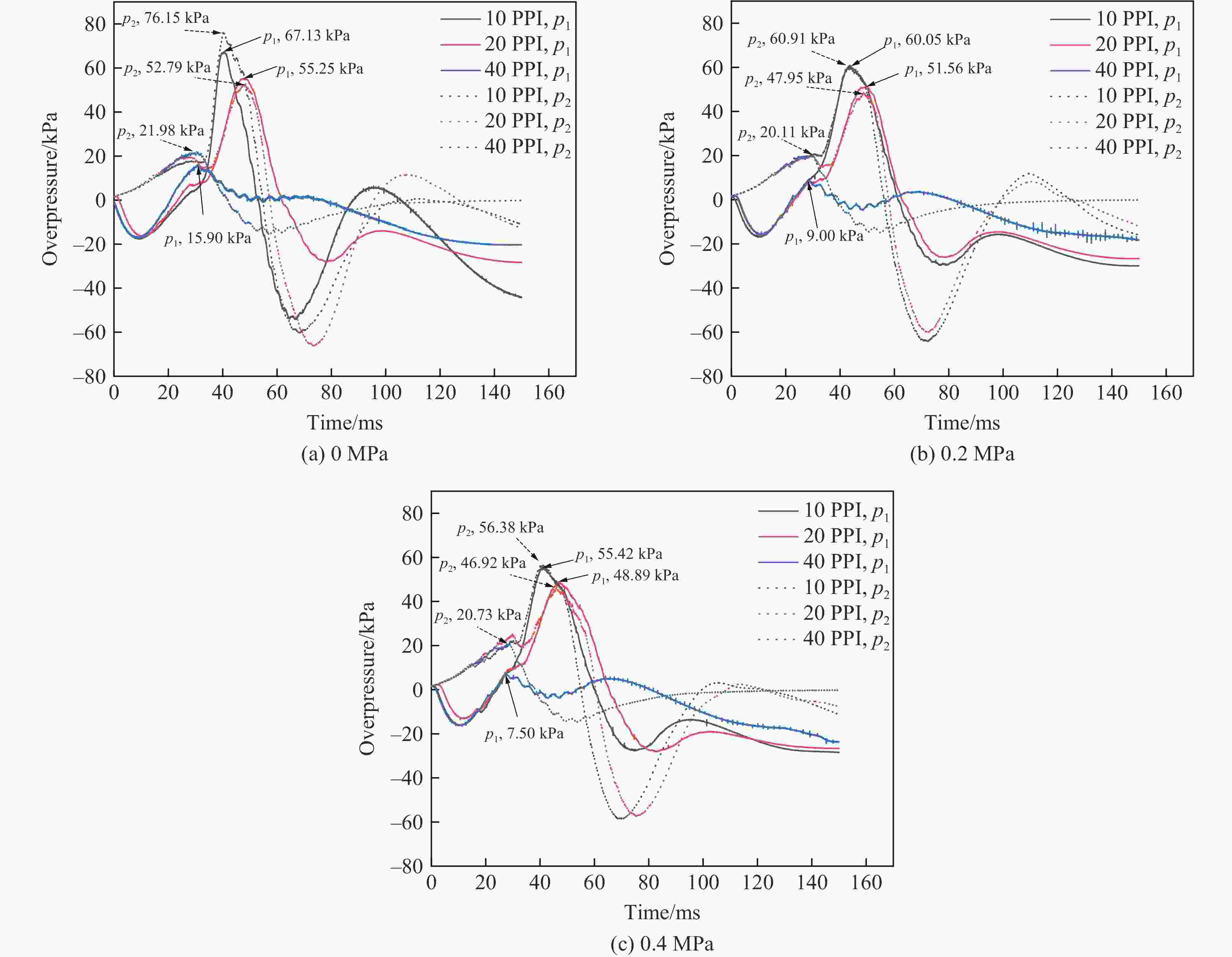 Case CO2 pressure/MPa Porosity/PPI Case CO2 pressure/MPa Porosity/PPI 1 0 10 6 0.2 40 2 0 20 7 0.4 10 3 0 40 8 0.4 20 4 0.2 10 9 0.4 40 5 0.2 20 表 2 各工况下爆炸超压峰值及超压峰值衰减率