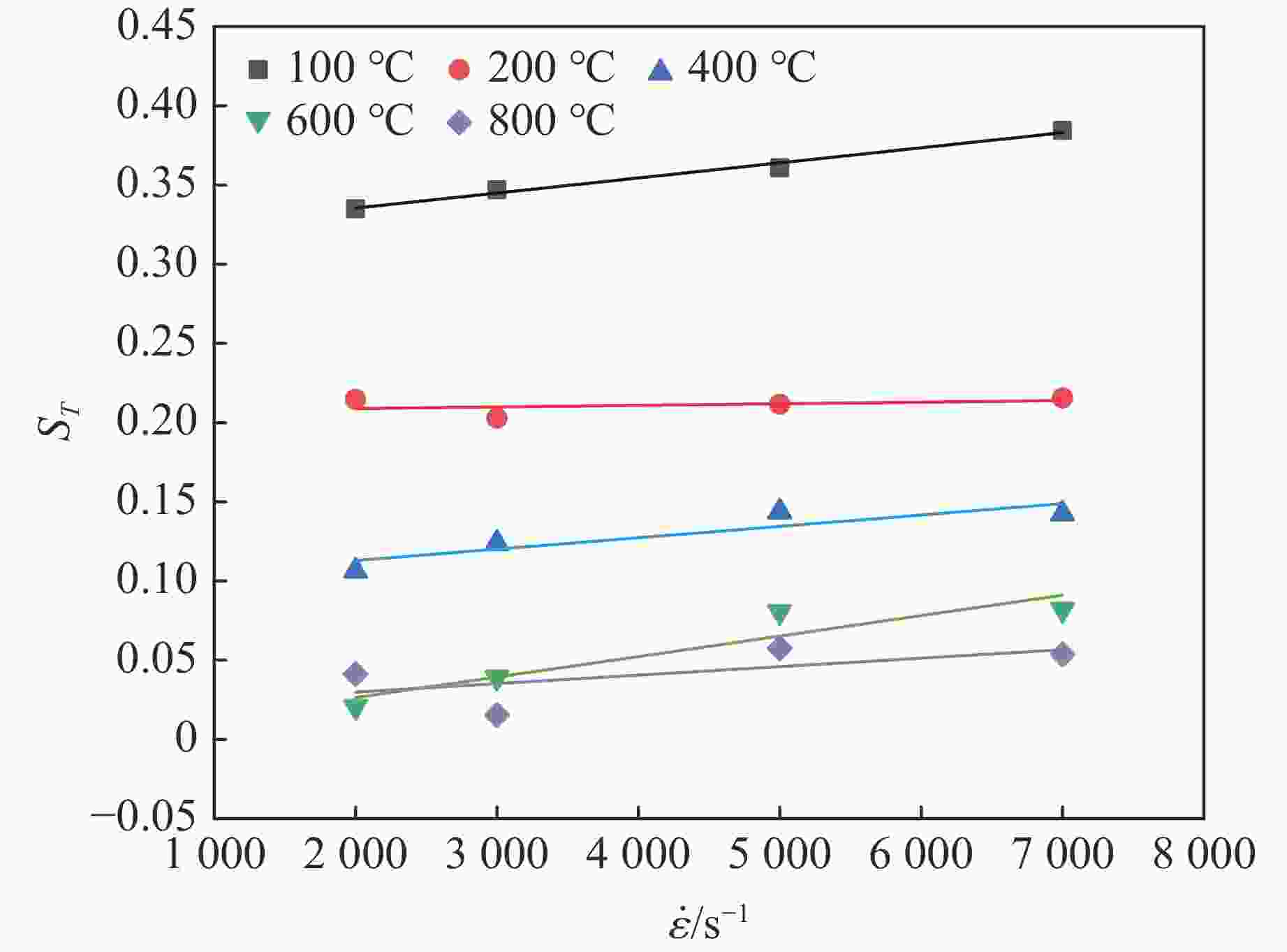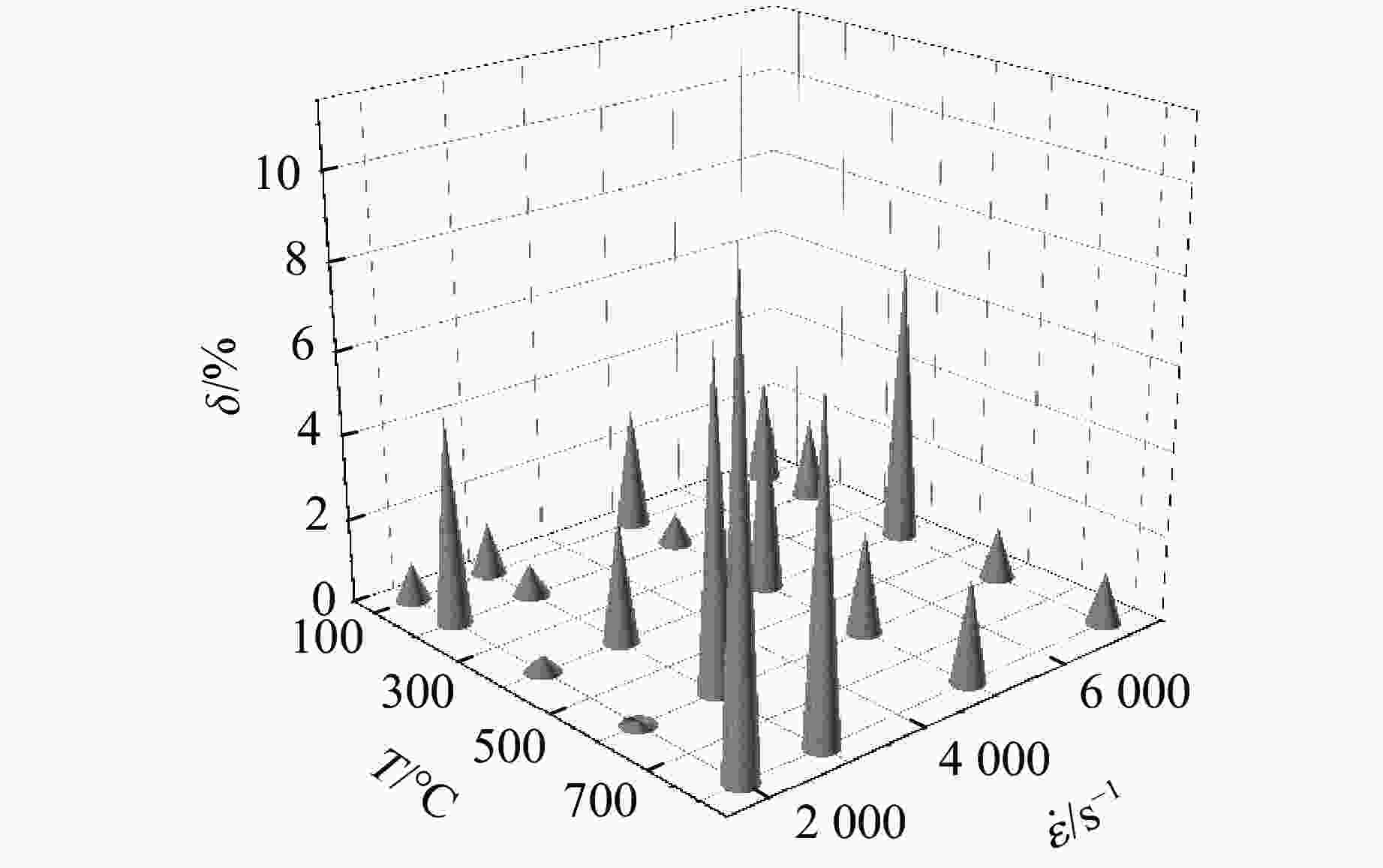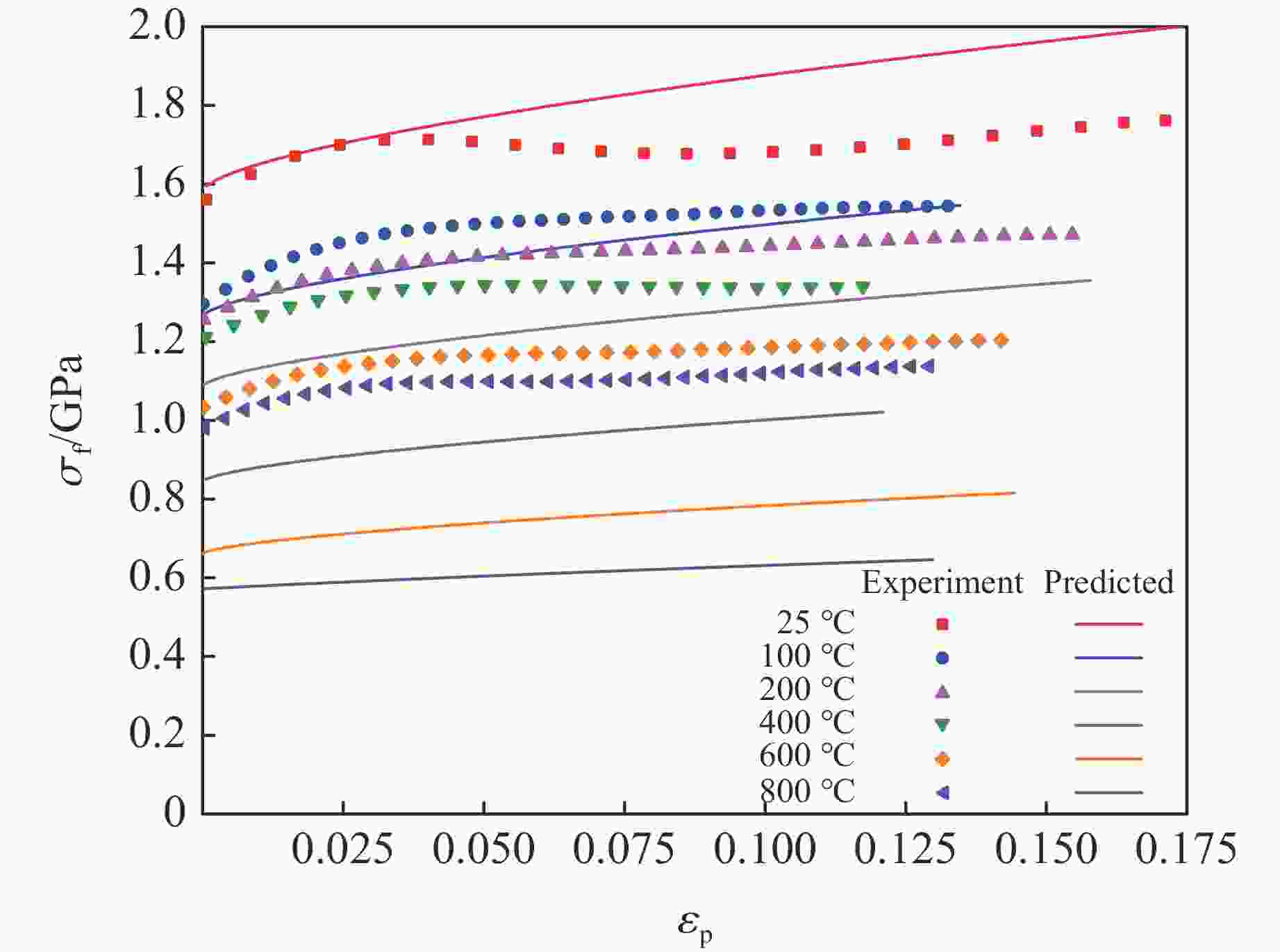 摘要: 采用分离式霍普金森压杆实验技术,研究了钛合金Ti6Al4V在温度为25~800 °C、应变速率为2000~7000 s−1的冲击压缩下的动态力学行为和微观组织演变,分析了其力学响应的温度依赖性和应变率敏感性,构建了可准确表征材料塑性流动行为的修正Johnson-Cook模型。结果表明,Ti6Al4V具有显著的应变硬化、应变率强化、应变率增塑和温度软化效应。随着加载温度和应变率的升高,材料的应变硬化效应减弱。温度敏感性随加载温度的升高而显著降低。应变率敏感性因子与加载温度呈负相关,随真实应变的增大呈下降趋势。高温高应变率下细小等轴α相、拉长型α相和块状α相取代初始等轴α相成为Ti6Al4V微观组织的典型特征。考虑率-温耦合作用和绝热温升影响的修正Johnson-Cook模型能够准确地预测Ti6Al4V的塑性流动应力-应变响应。Abstract: The dynamic mechanical behavior and microstructure evolution of titanium alloy Ti6Al4V under shock compression at temperatures ranging from 25 ℃ to 800 ℃ and strain rates from 2000 s−1 to 7000 s−1 were studied by using a split Hopkinson pressure bar. The temperature dependence and strain rate sensitivity of the material’s mechanical response were analyzed, and a modified Johnson-Cook model that could accurately characterize the plastic flow behavior of the material was developed. The results show that Ti6Al4V exhibited significant strain hardening, strain rate strengthening, strain rate plasticity, and temperature softening effects. With increasing loading temperature and strain rate, the material’s strain hardening effect is weakened. The temperature sensitivity is significantly decreased with increasing loading temperature. The strain rate sensitivity factor is negatively correlated with the loading temperature, and it shows a downward trend as the true strain increased. At high temperatures and high strain rates, fine equiaxial α phase, elongated α phase, and massive α phase replace the initial equiaxial α phase as the typical microstructure features of Ti6Al4V. The modified Johnson-Cook model that considers the effect of rate-temperature coupling and adiabatic temperature rise can accurately predict the plastic flow stress-strain response of Ti6Al4V.