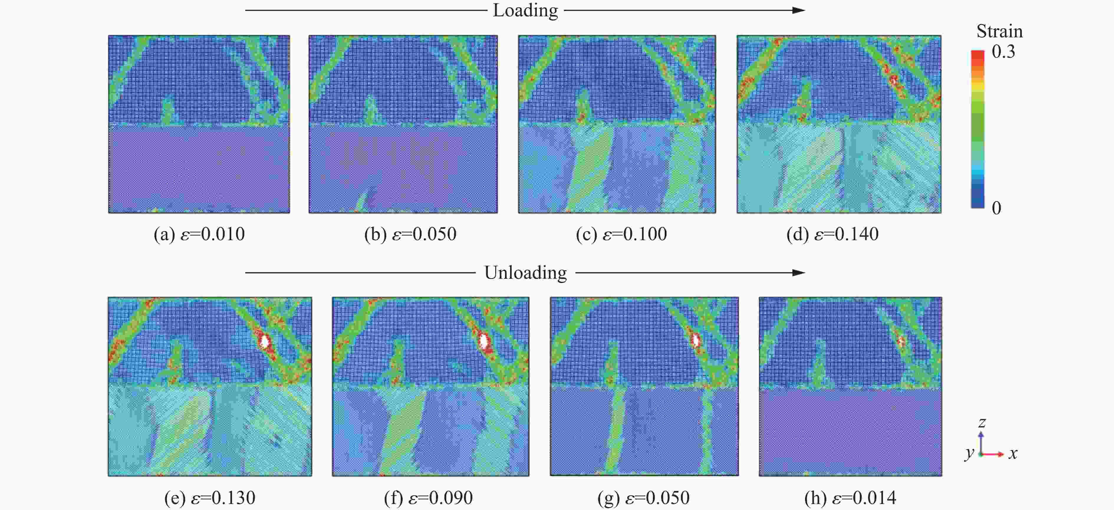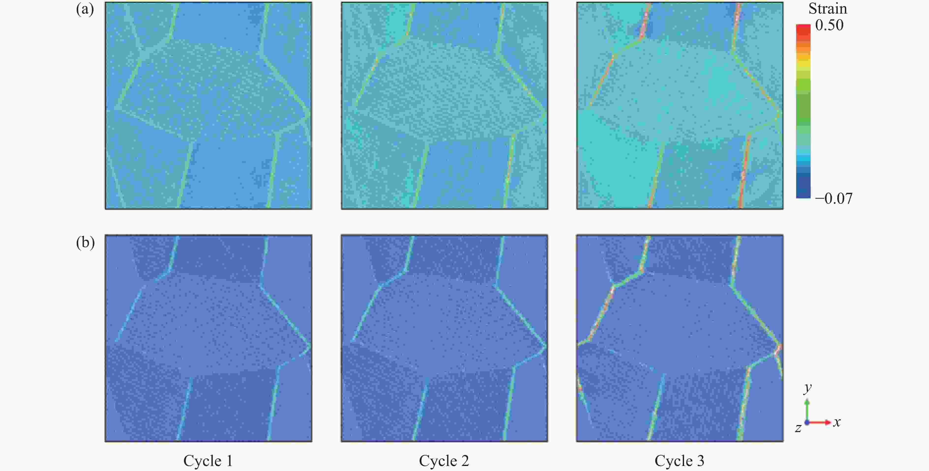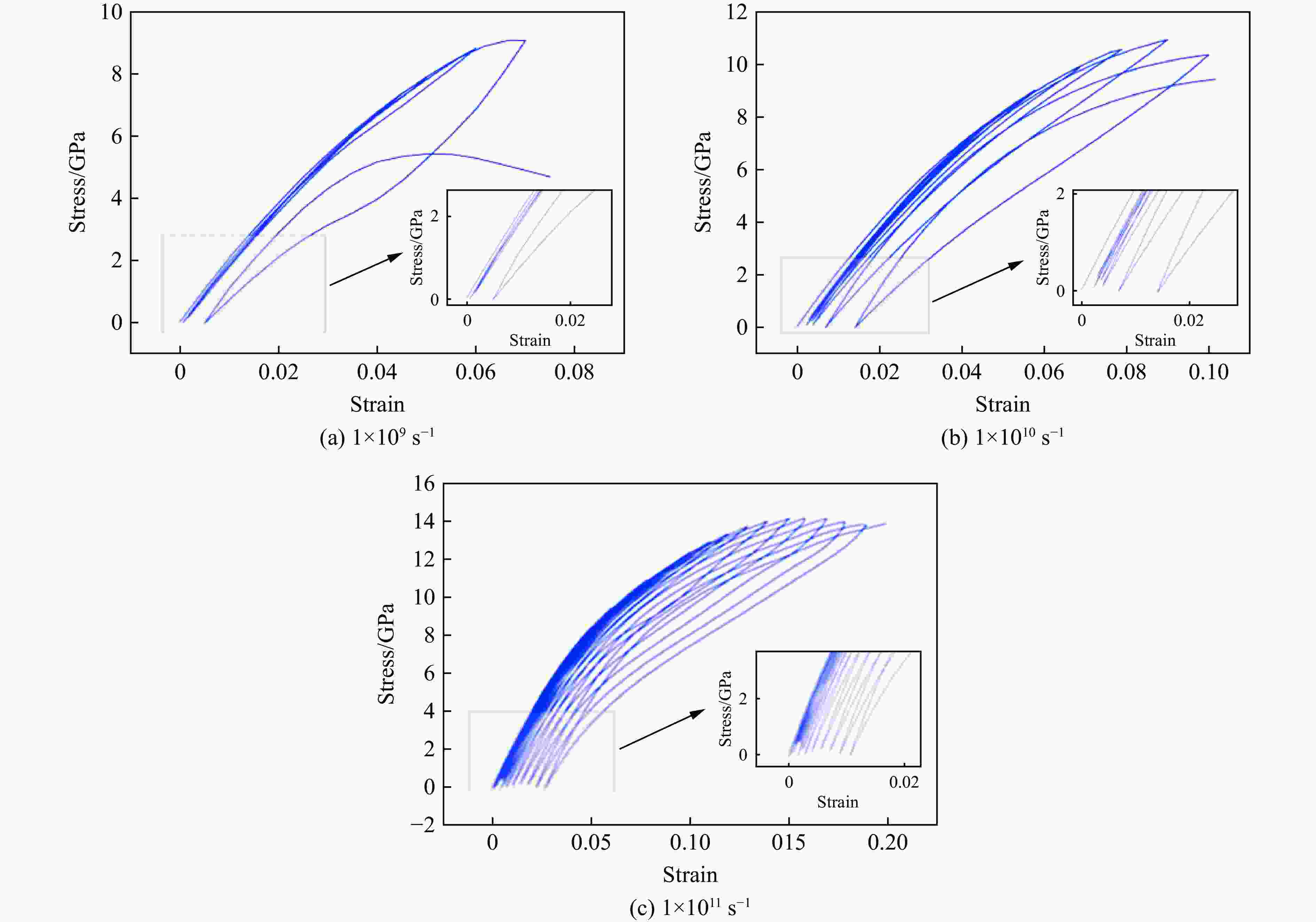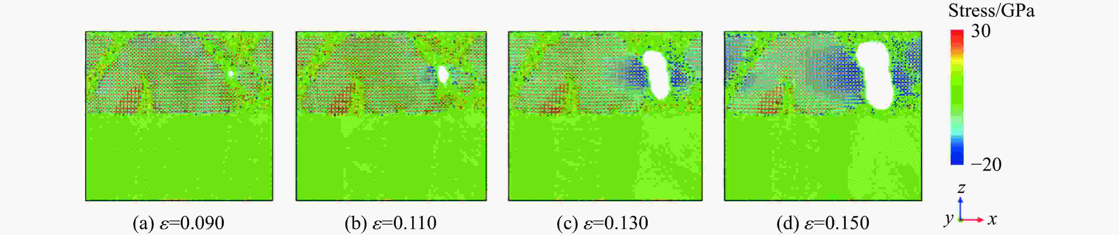 摘要: Nb3Sn超导体在循环载荷下的变形损伤行为研究对揭示超导体临界性能不可逆退化背后的力学机制具有重要意义。采用分子动力学模拟方法研究了极低温条件下单晶和多晶Nb3Sn/Nb复合材料在循环载荷下的变形损伤行为,同时分析了应变率对Nb3Sn/Nb复合材料变形损伤和断裂行为的影响。结果表明:单晶Nb3Sn/Nb复合材料在循环载荷作用后,Nb3Sn层出现滑移,当滑移带交错处的局部应力大于材料强度时,在滑移带交错处微裂纹萌生,致使复合材料中Nb3Sn层断裂失效;而多晶Nb3Sn/Nb复合材料则由于晶界处应力在循环载荷下得不到松弛,当应力峰值超过晶界强度时,在晶界处萌生微裂纹,导致复合材料中Nb3Sn层发生沿晶断裂。Nb3Sn/Nb复合材料在不同应变率下表现出不同的断裂方式。随着应变率的增加,单晶Nb3Sn层中的滑移带数量增加,导致单晶Nb3Sn/Nb复合材料的韧性增强。而多晶Nb3Sn/Nb复合材料中,晶界对材料强度的影响随着应变率的增加而降低,高应变率下,复合材料在Nb3Sn层局部断裂后具有较大的剩余强度。研究结果将有助于理解Nb3Sn/Nb复合材料在循环载荷下的损伤演化过程,为材料的性能优化设计提供一定的理论指导。