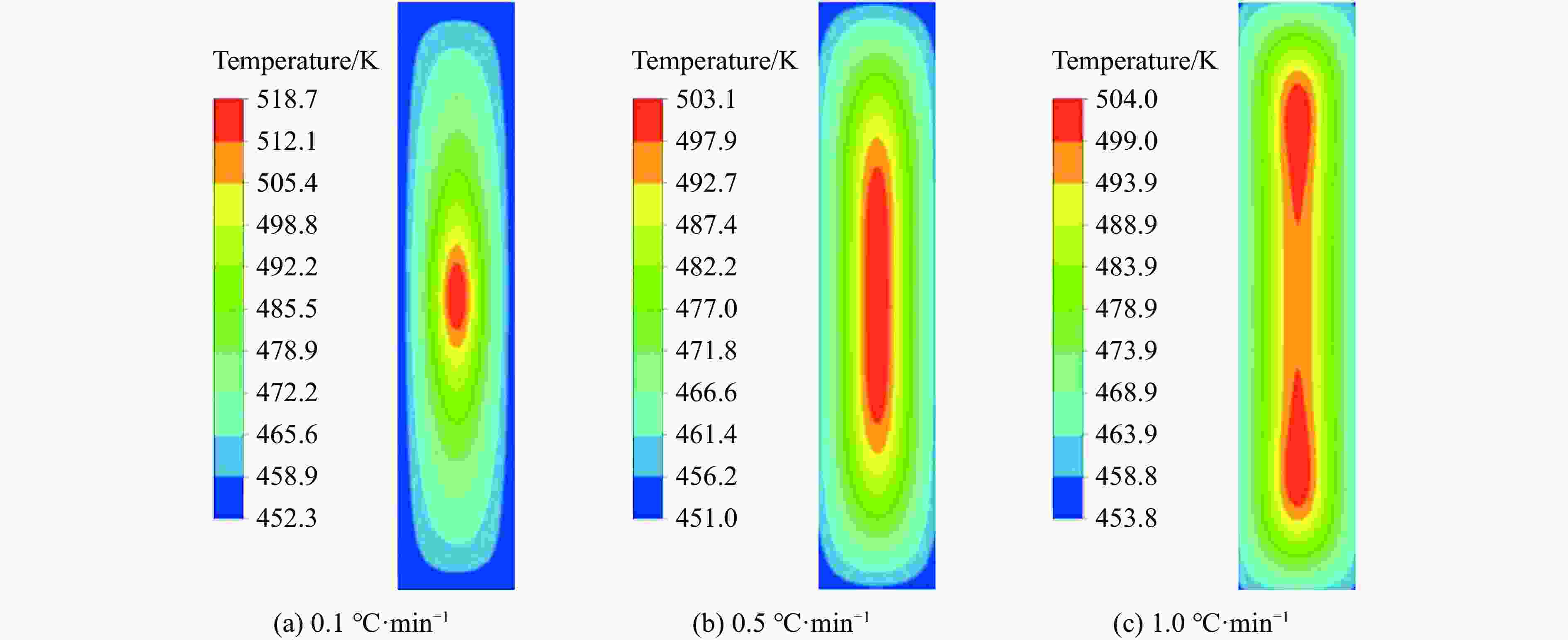 Figure  7.  Temperature contours of test bombs with different charge sizes at the heating rate of 1.0 ℃/min
