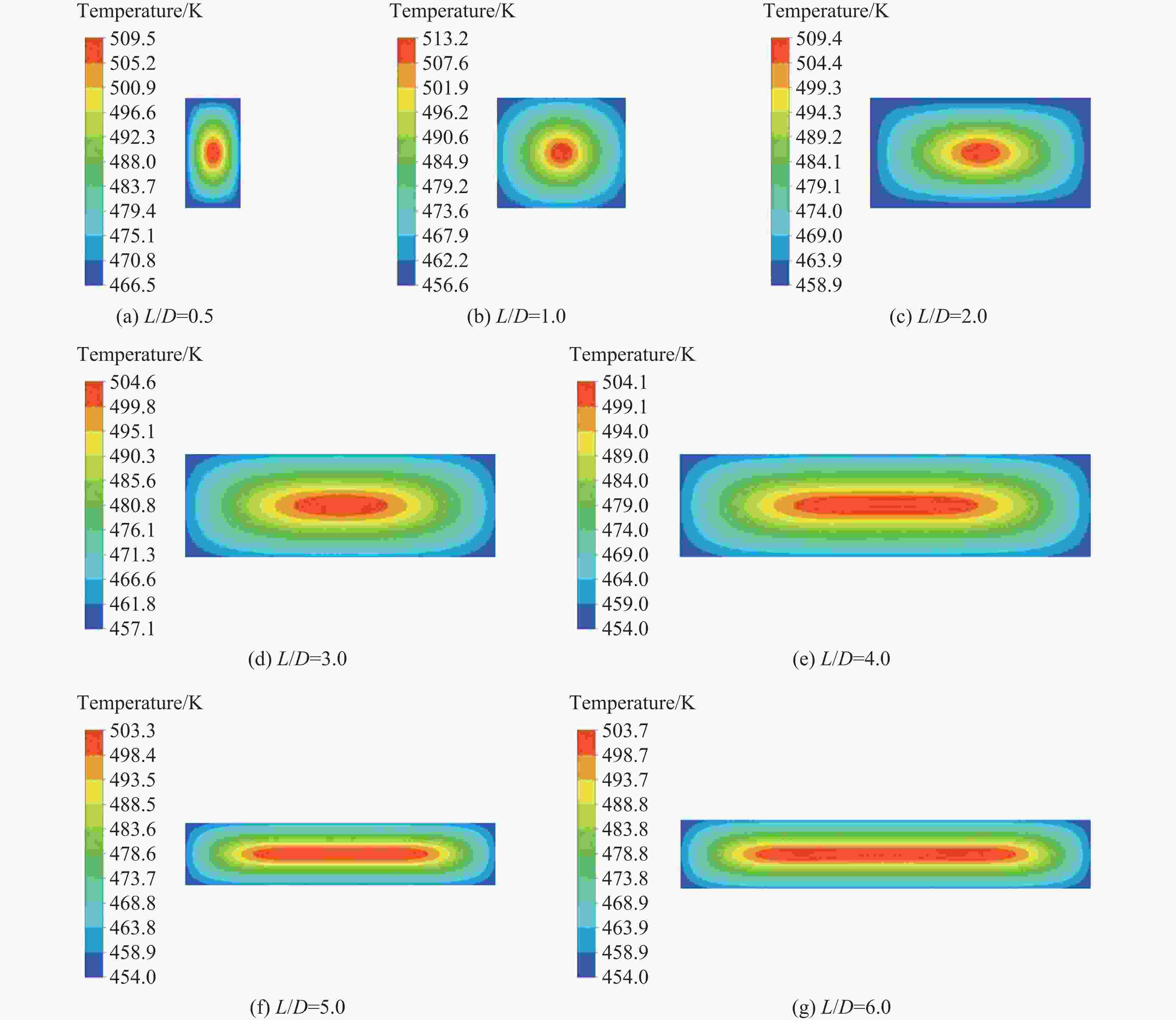 图  0.7 ℃/min升温速率下不同装药尺寸样弹烤燃温度分布云图