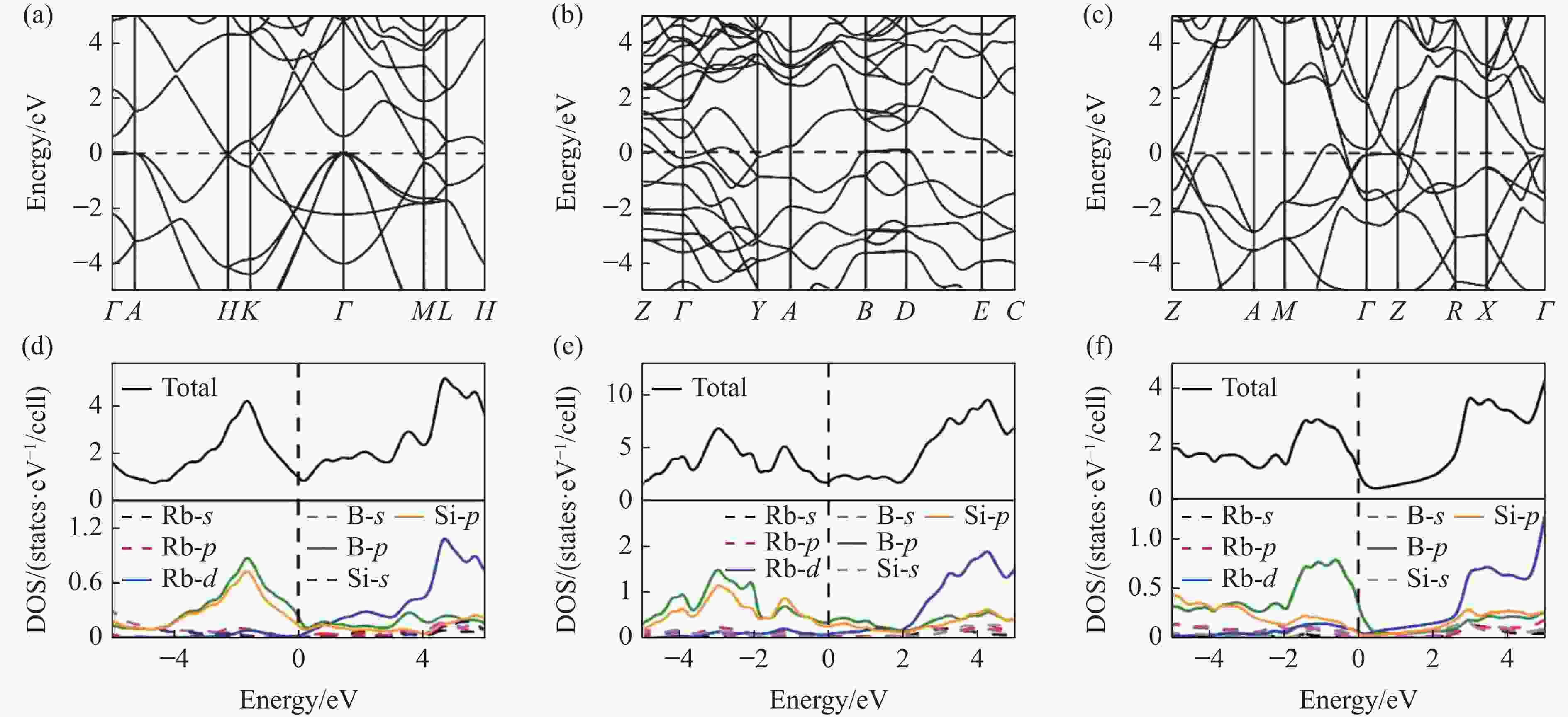 摘要: 对RbBSi化合物在0~100 GPa压力范围内进行了广泛的群体智能结构搜索。提出了RbBSi的3种不同相,并通过第一性原理计算了其稳定性、电子结构和潜在的超导电性。在所研究的压力范围内,所有预测相在热力学和动力学上都是稳定的。3个相的能带都穿过费米能级,表明结构具备金属性。此外,P4/nmm-RbBSi在常压下的超导转变温度为14.4 K。这项工作加深了人们对碱金属硼硅化合物在超导体领域的理解,有望拓宽碱金属硼硅化合物在超导体领域的应用。Abstract: In this work, we have performed extensive swarm-intelligence structures searching simulations on the RbBSi compounds within the pressure range from 0 to 100 GPa. We have proposed three different phases of RbBSi, of which the stability, the electronic structure and the potential superconductivity were calculated by first-principles calculations. All predicted phases are thermodynamically and dynamically stable within the studied pressure range. The bands of the three phases crossing the Fermi level indicate the structures are all metallic. In addition,P4/nmm-RbBSi is a superconductor withTc of 14.4 K at ambient pressure. This work extends the understanding and potential application of alkali metal boron-silicide compounds in the field of superconductor.
