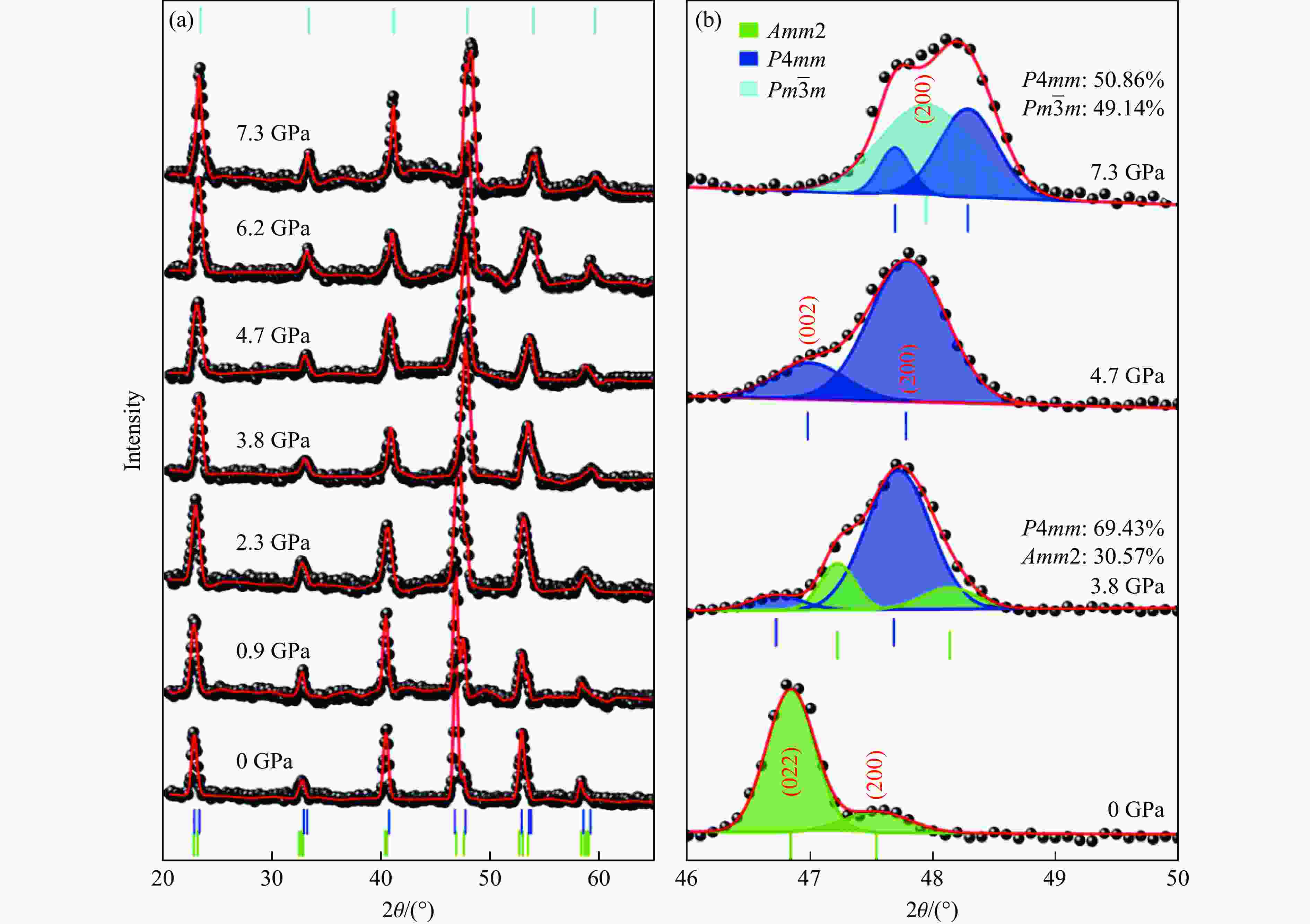 图  KNN铁电陶瓷材料的室温高压中子衍射结果[45]
