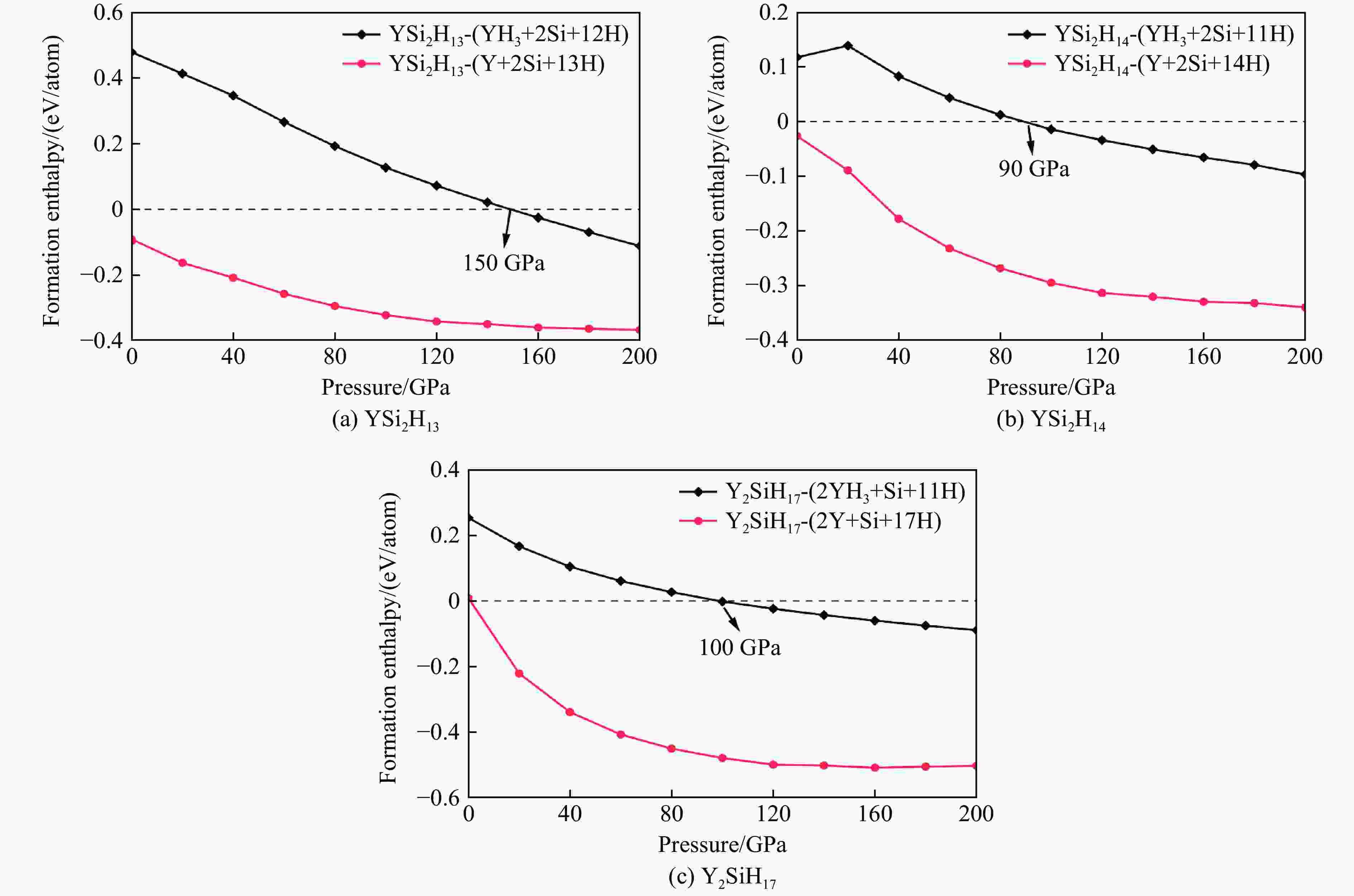 图  计算的YSi2H13、YSi2H14和Y2SiH17的形成焓随压力的变化
