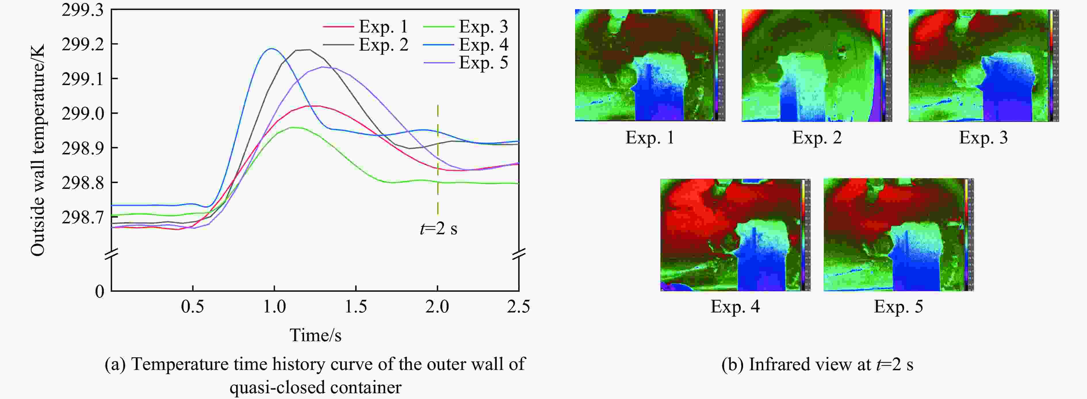 Figure  10.  Temperature time history curve of the outer wall of quasi-closed container and the infrared view at typical moments
